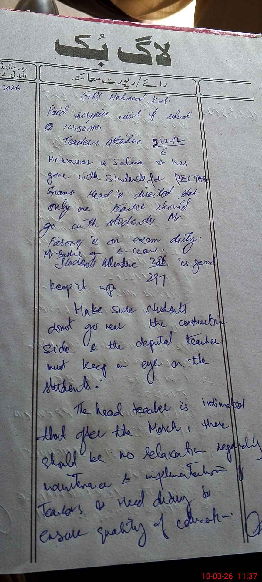 | EMIS Code: 36110109 | Name of School: GPS MEHMOOD KOT BOSAN ROAD MULTAN | |||