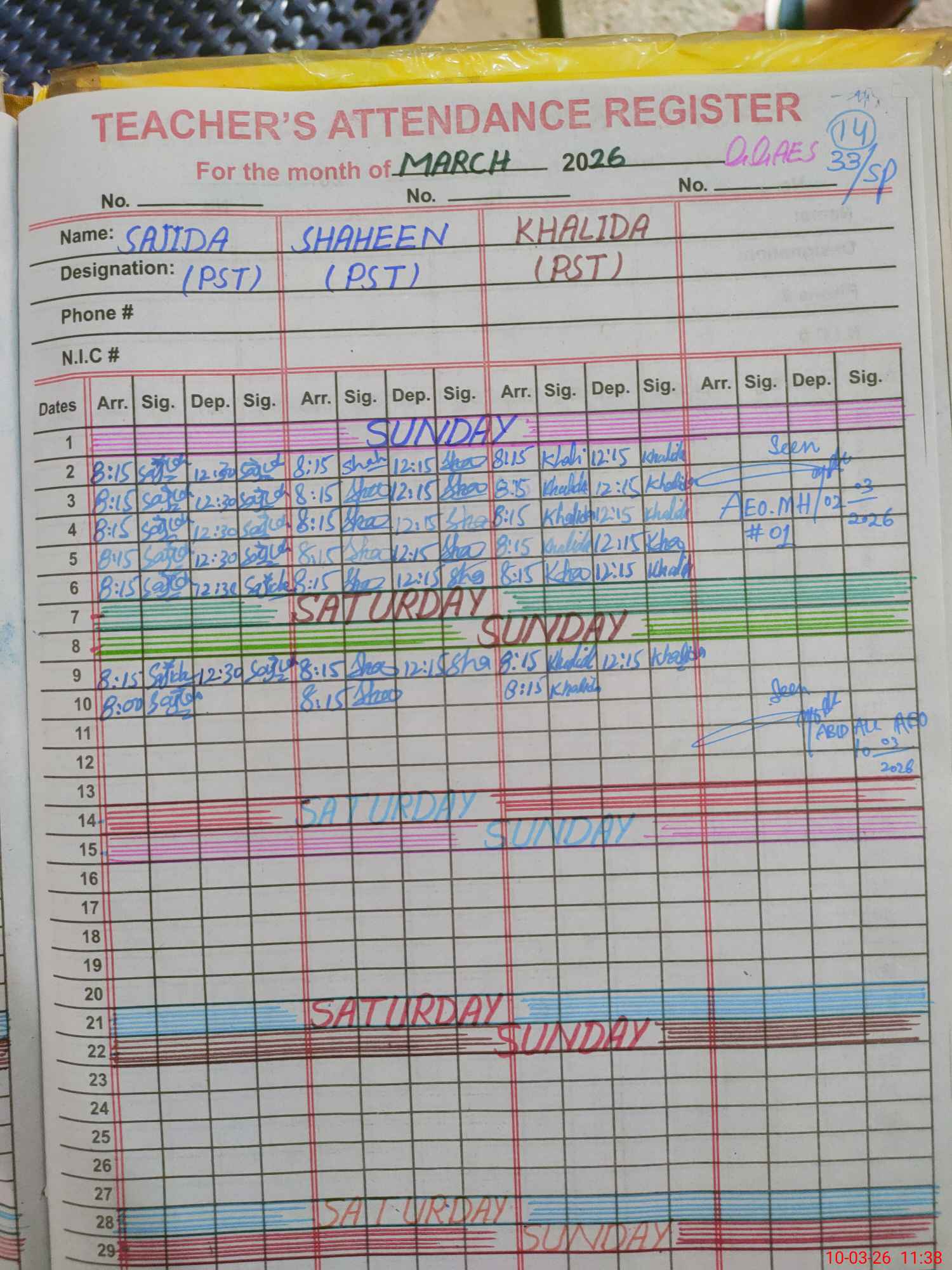 | Name of AEO: | AEO Contact No.: | MEA Phone#: 03**** | ||