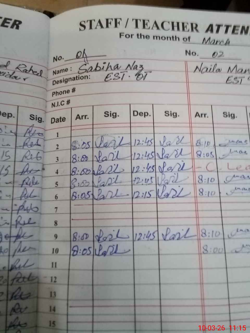 | Name: NA**** SH**** Designation: (School Headmaster's/Headmistress's) S.S.T.(G) Phone/Cell Number: 03**** |