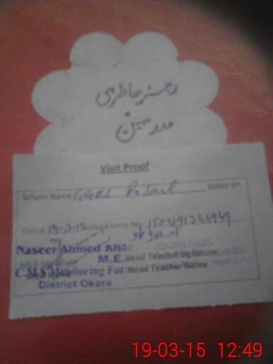 | Name: RE**** MU**** Designation: (School Headmaster's/Headmistress's) EST Phone/Cell Number: 03**** |