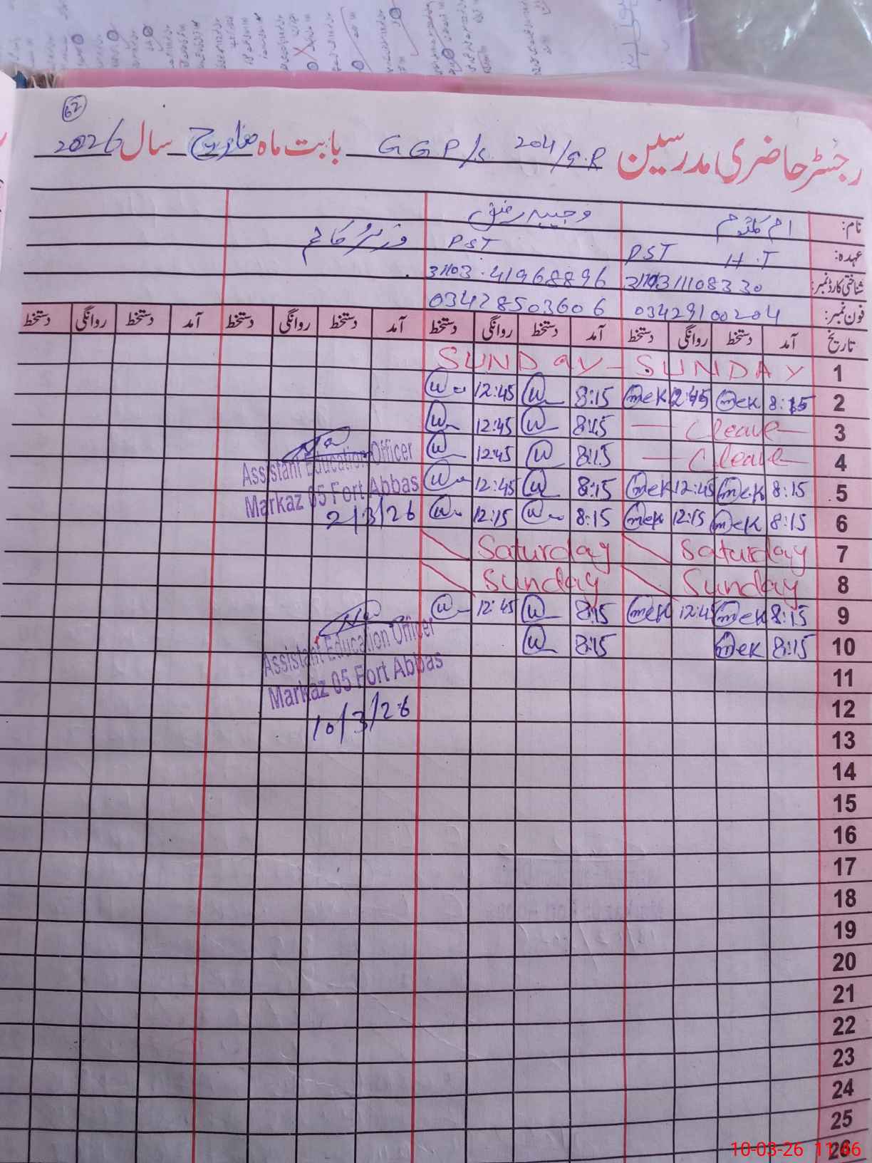 | District: BAHAWALNAGAR | Tehsil: FORT ABBAS | Markaz: FTS-V-FEMALE | Level: Primary | |
