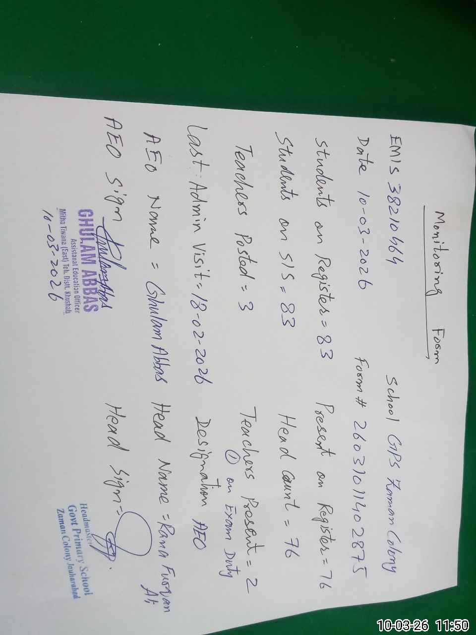 | EMIS Code: 38210464 | Name of School: GPS ZAMAN COLONY | |||