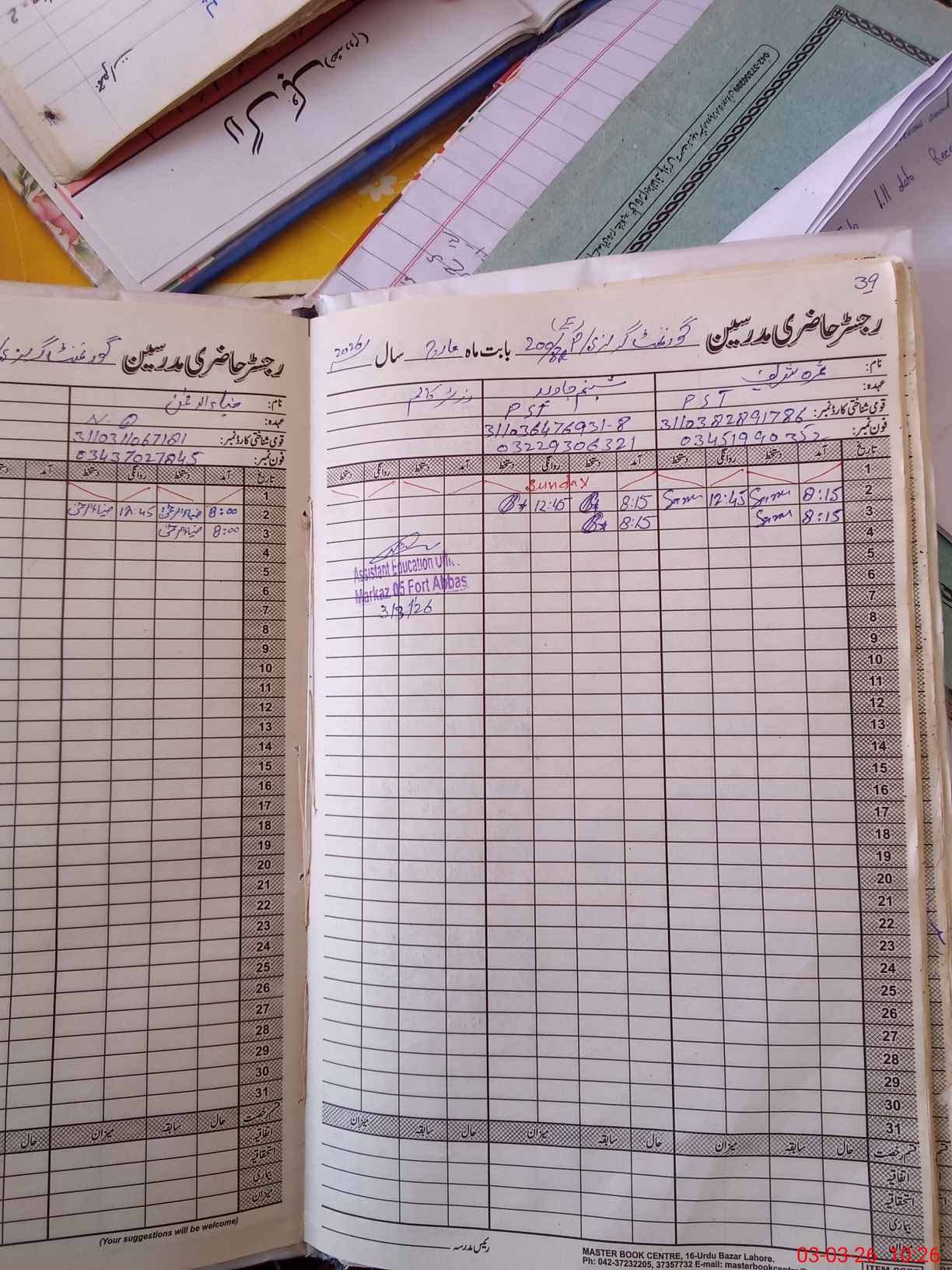 | District: BAHAWALNAGAR | Tehsil: FORT ABBAS | Markaz: FTS-V-FEMALE | Level: Primary | |