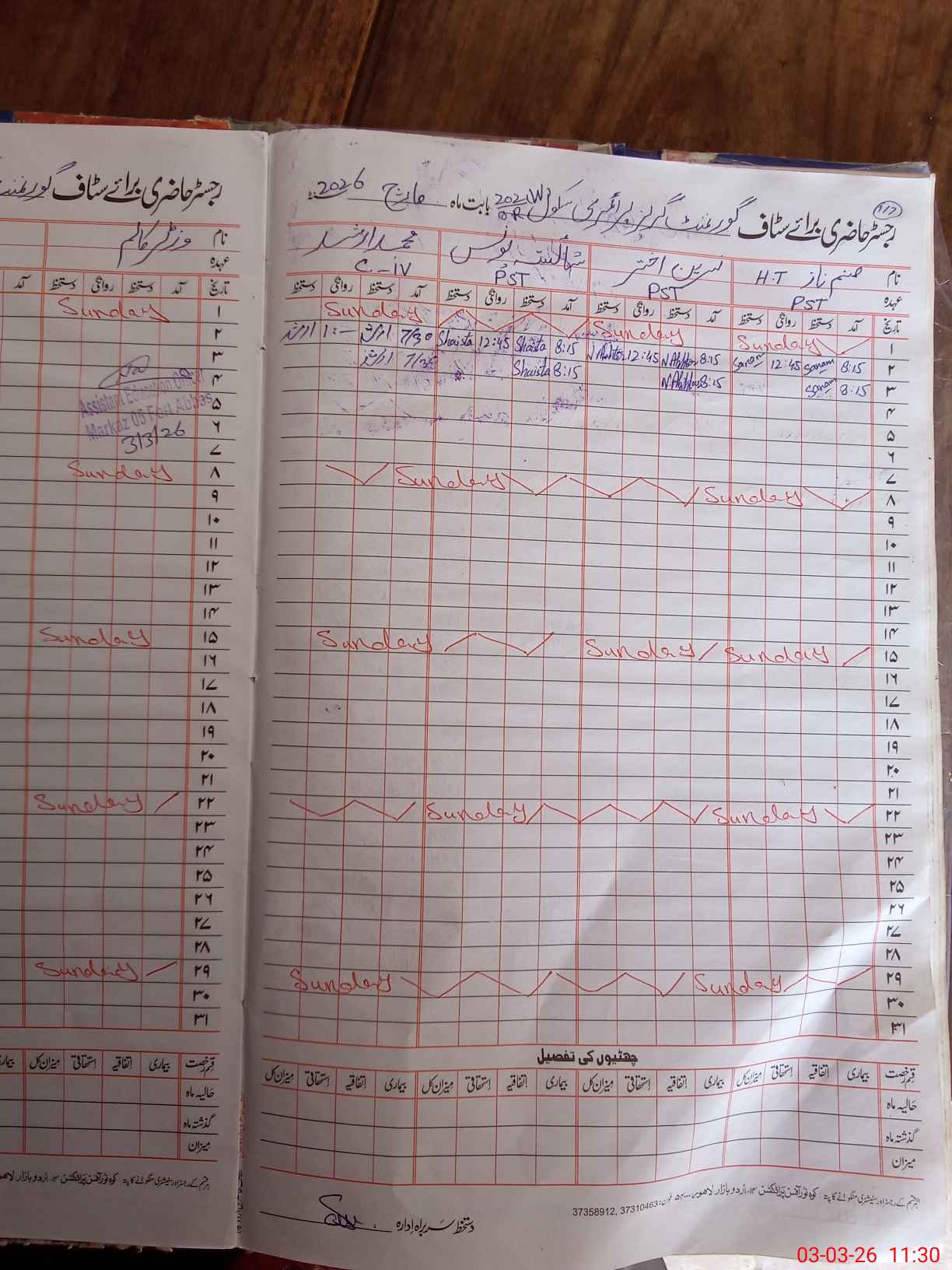 | CNIC | Full Name | Designation | R/C | Absence During Last Calender Month |