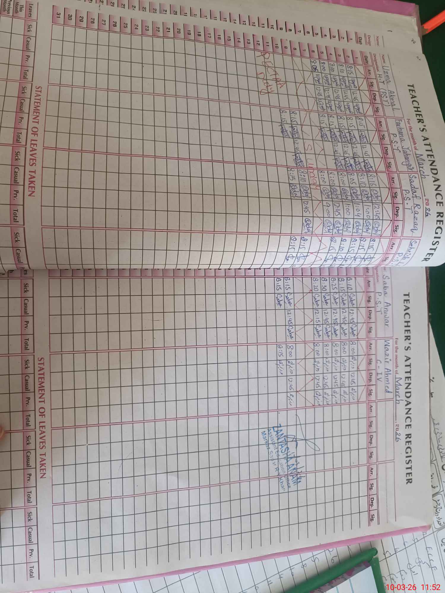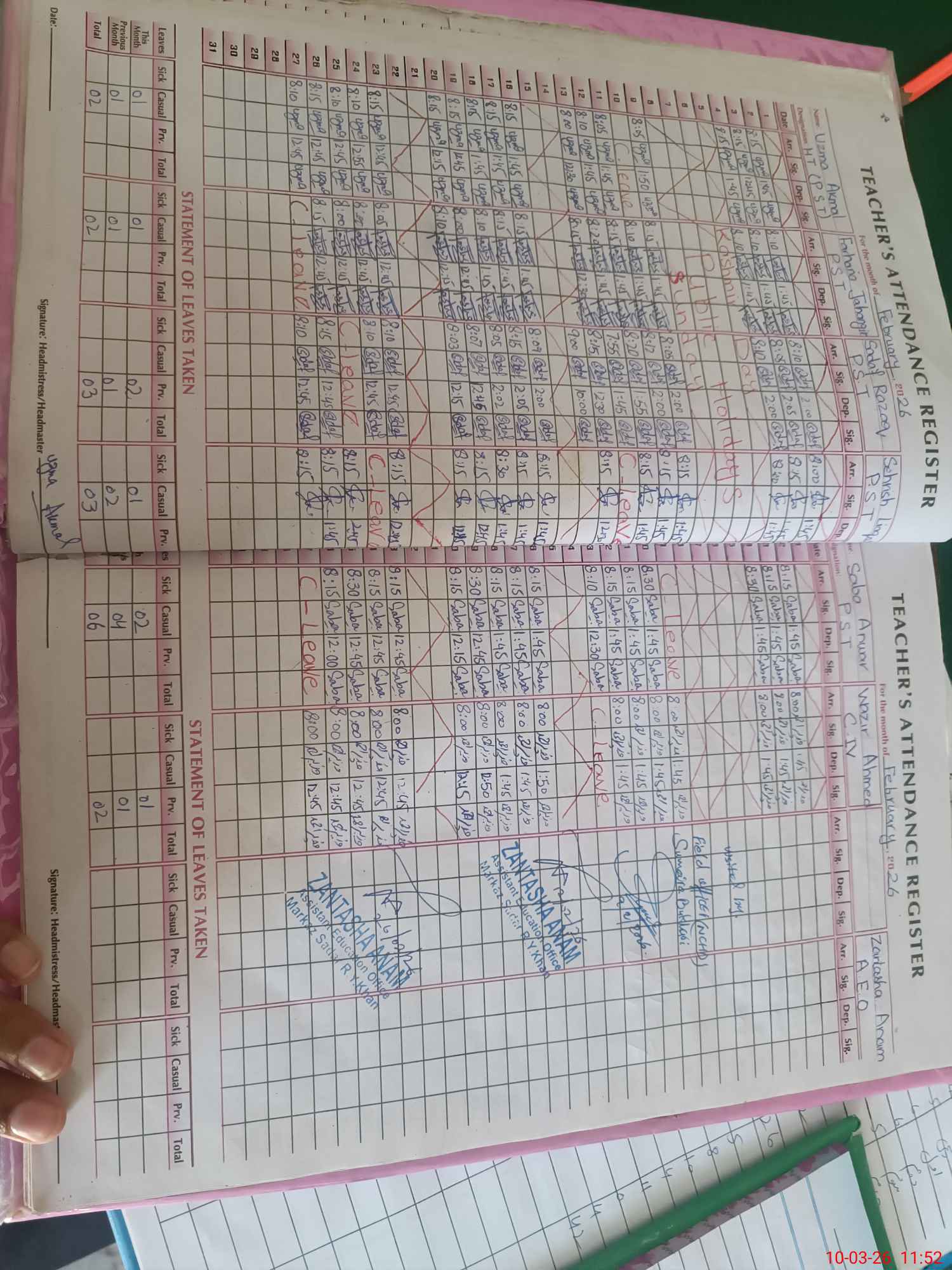 | Name: Uz**** Ak**** Designation: (School Headmaster's/Headmistress's) PST Phone/Cell Number: 03**** |