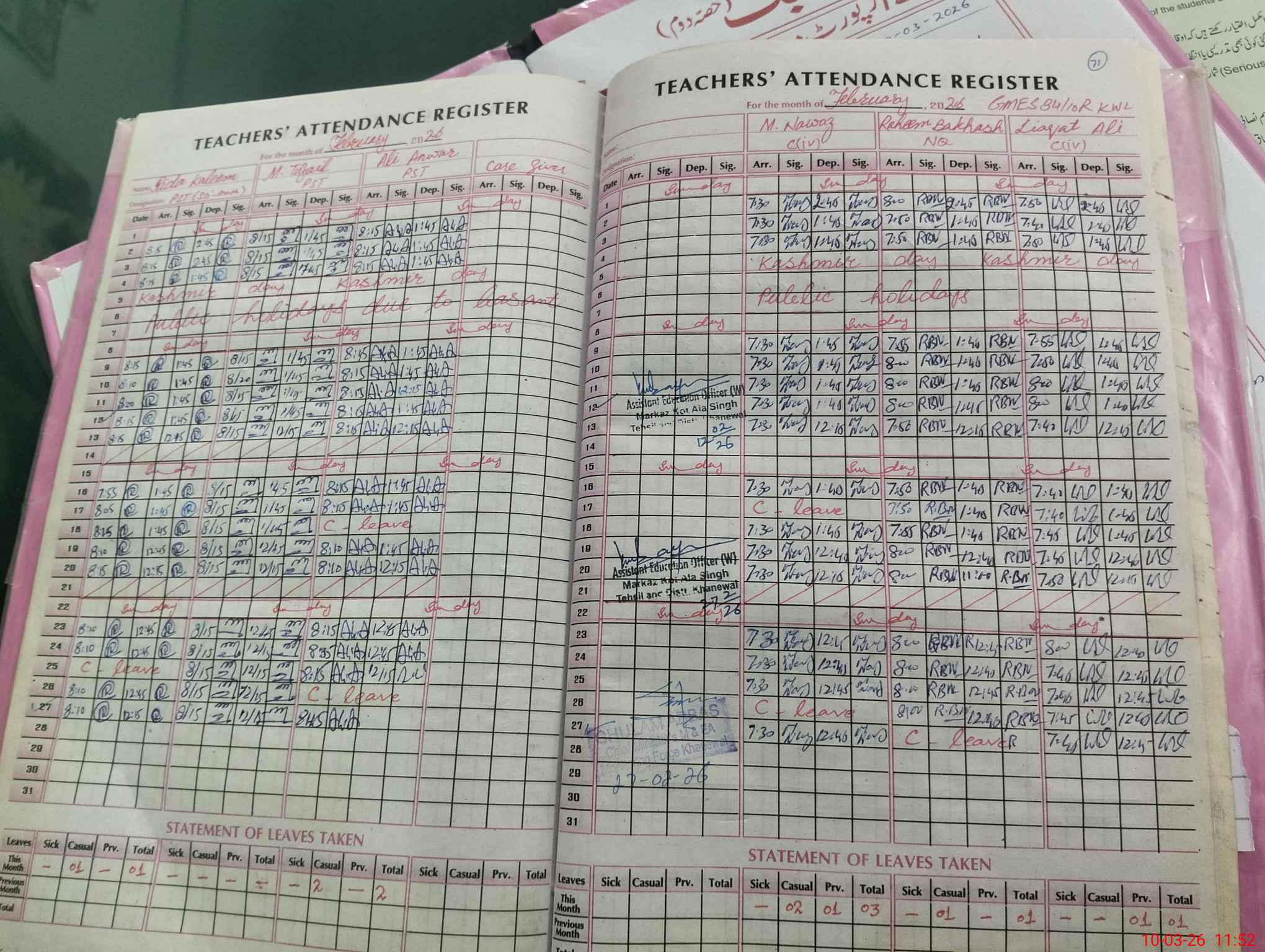 | CNIC | Full Name | Designation | R/C | Absence During Last Calender Month |