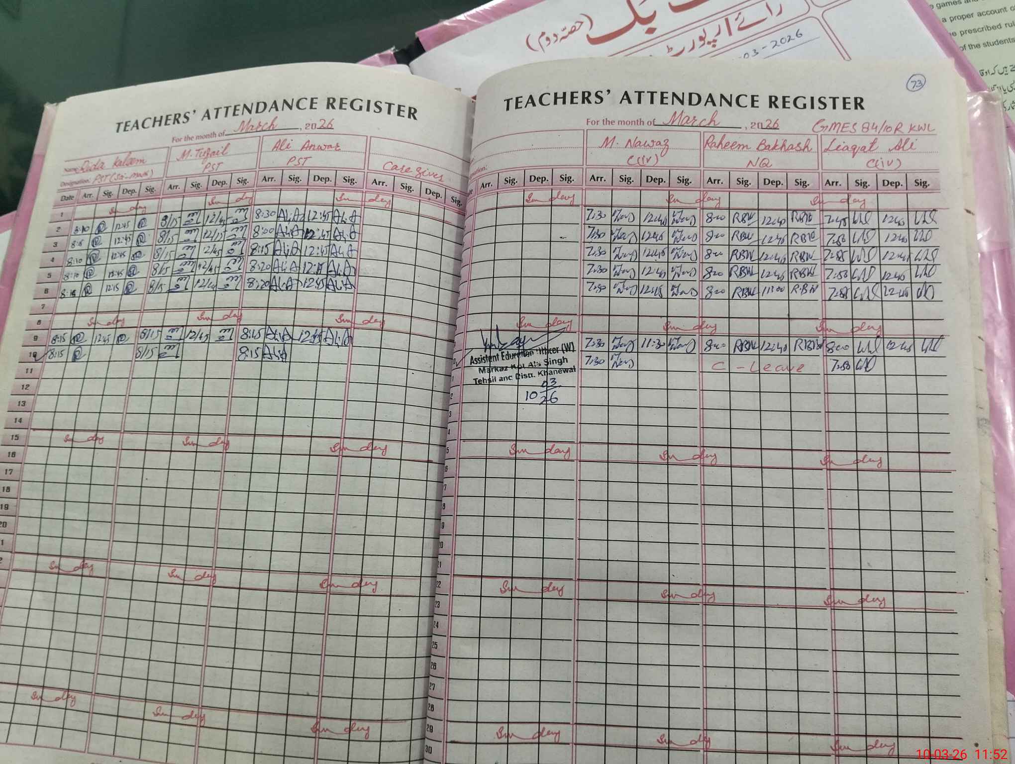 | Name: SA**** TE**** Designation: (School Headmaster's/Headmistress's) SST Phone/Cell Number: 03**** |
