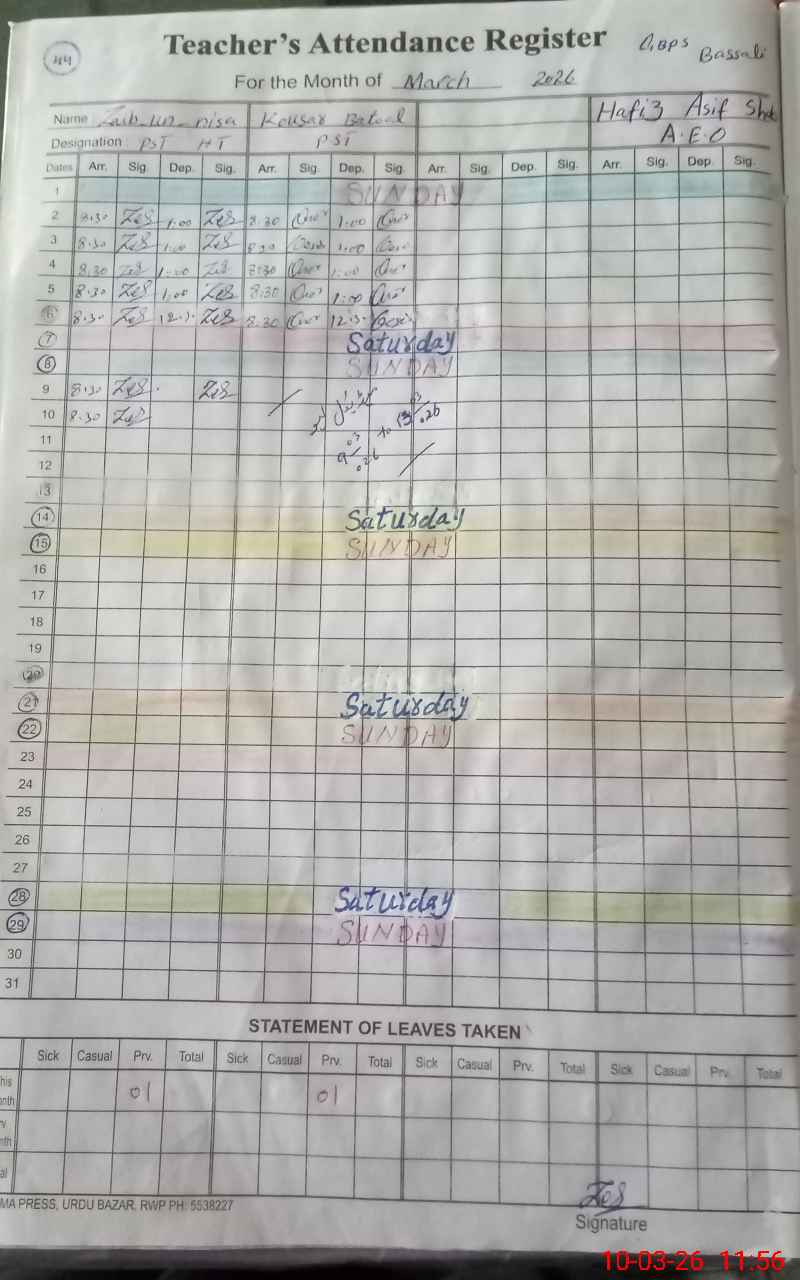 | District: RAWALPINDI | Tehsil: RAWALPINDI | Markaz: BASSALI MALE | Level: Primary | |
