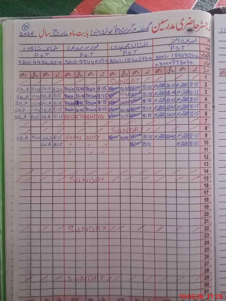 | Name: NA**** AK**** Designation: (School Headmaster's/Headmistress's) PST Phone/Cell Number: 03**** |