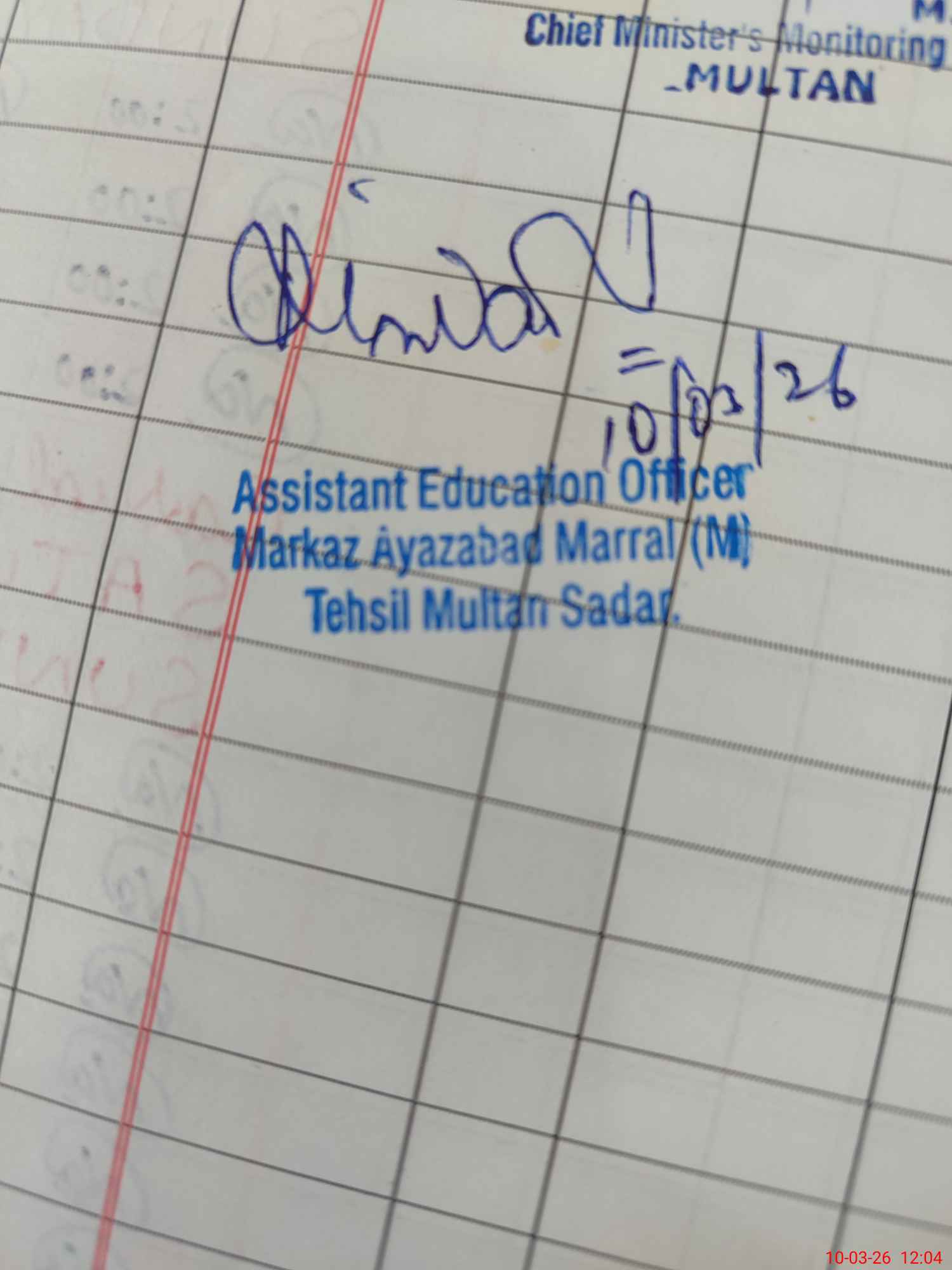 | District: MULTAN | Tehsil: MULTAN SADAR | Markaz: AYAZABAD MARAL - MALE | Level: Primary | |