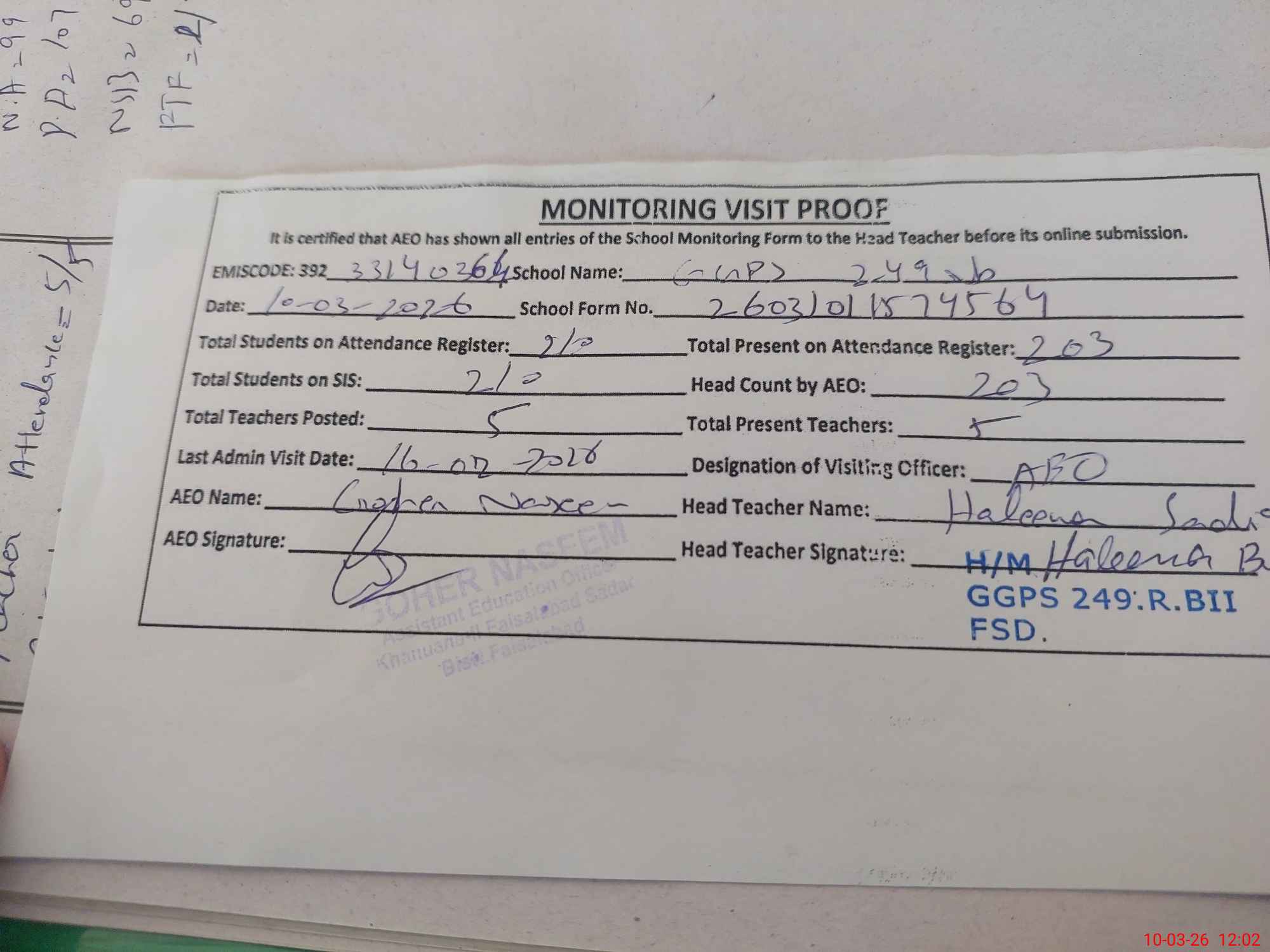 | EMIS Code: 33140364 | Name of School: GGPS CHAK 249 RB | |||