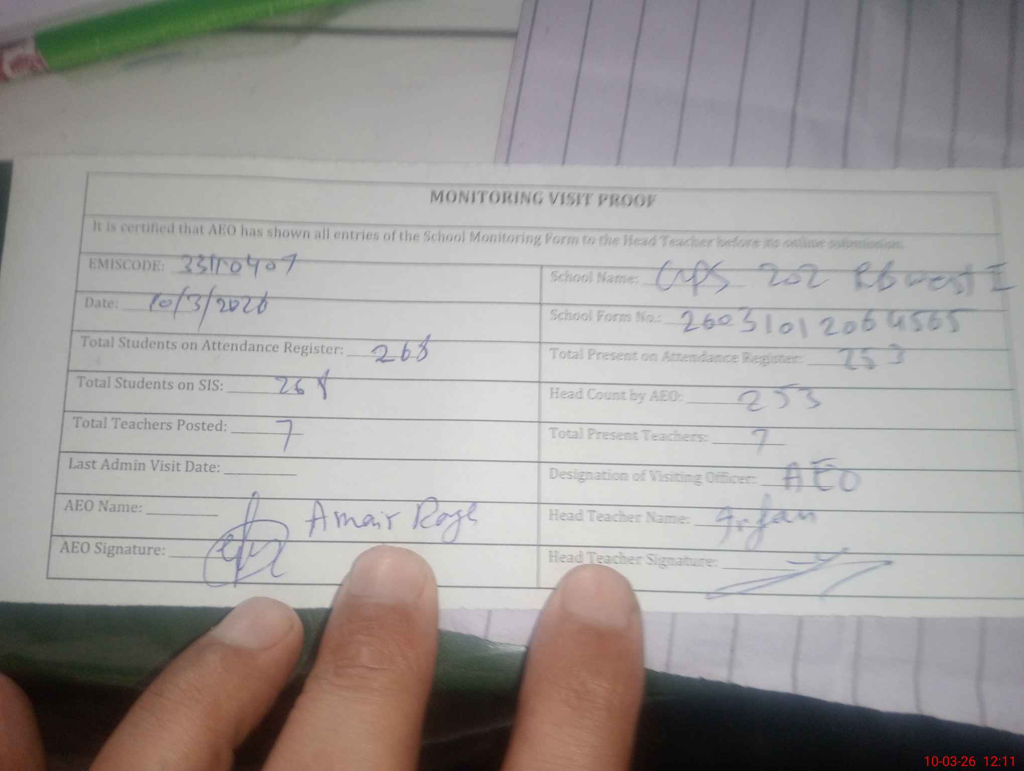 | EMIS Code: 33110407 | Name of School: GPS 202 RB I WEST BHIWALA | |||