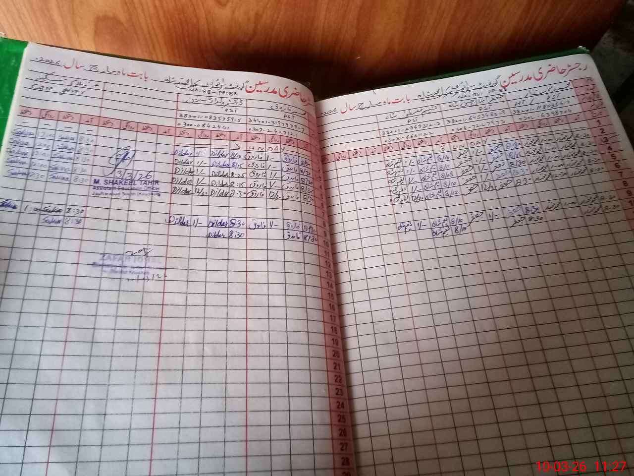 | Name: WA**** AK**** Designation: (School Headmaster's/Headmistress's) PST Phone/Cell Number: 03**** |