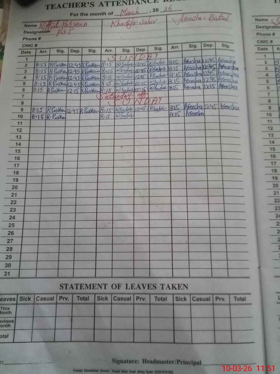 | Name: IS**** ZA**** Designation: (School Headmaster's/Headmistress's) PST/PTC/JV Phone/Cell Number: 03**** |