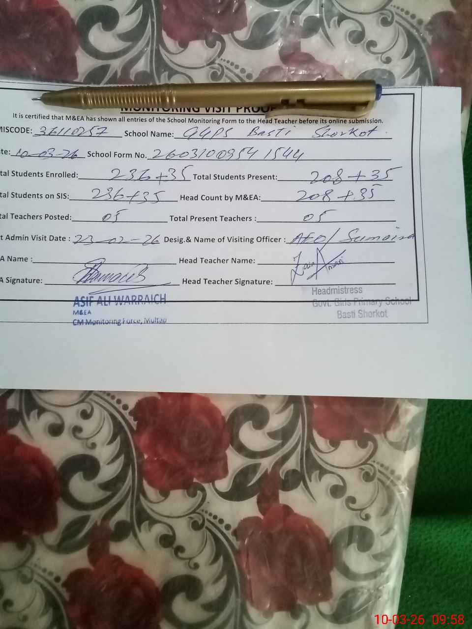 | EMIS Code: 36110257 | Name of School: GGPS BASTI SHORKOT BAHAWALPUR ROAD | |||