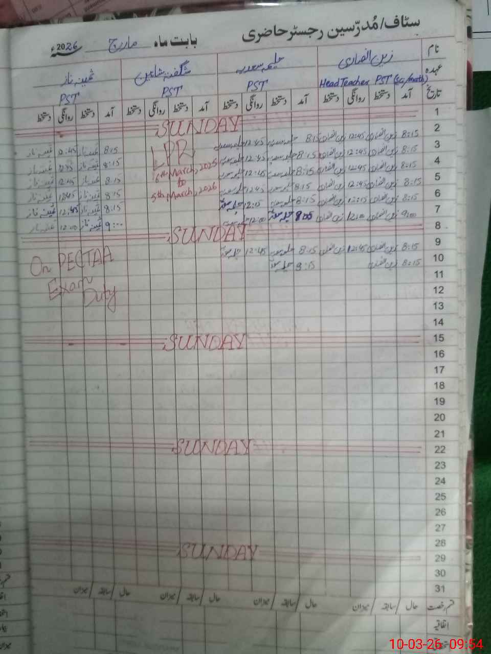 | 36**** | Sa**** Na**** | PST | Regular | 0 | 0 | 0 | 0 | 0 | 0 | 0 | 0 | 0 | Exam Duty |