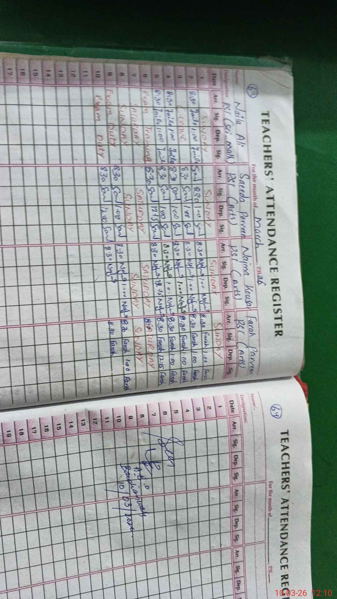 | 35**** | Na**** Al**** | PST Science/Maths | Regular | 0 | 0 | 0 | 0 | 0 | 0 | 0 | 0 | 0 | Exam Duty |