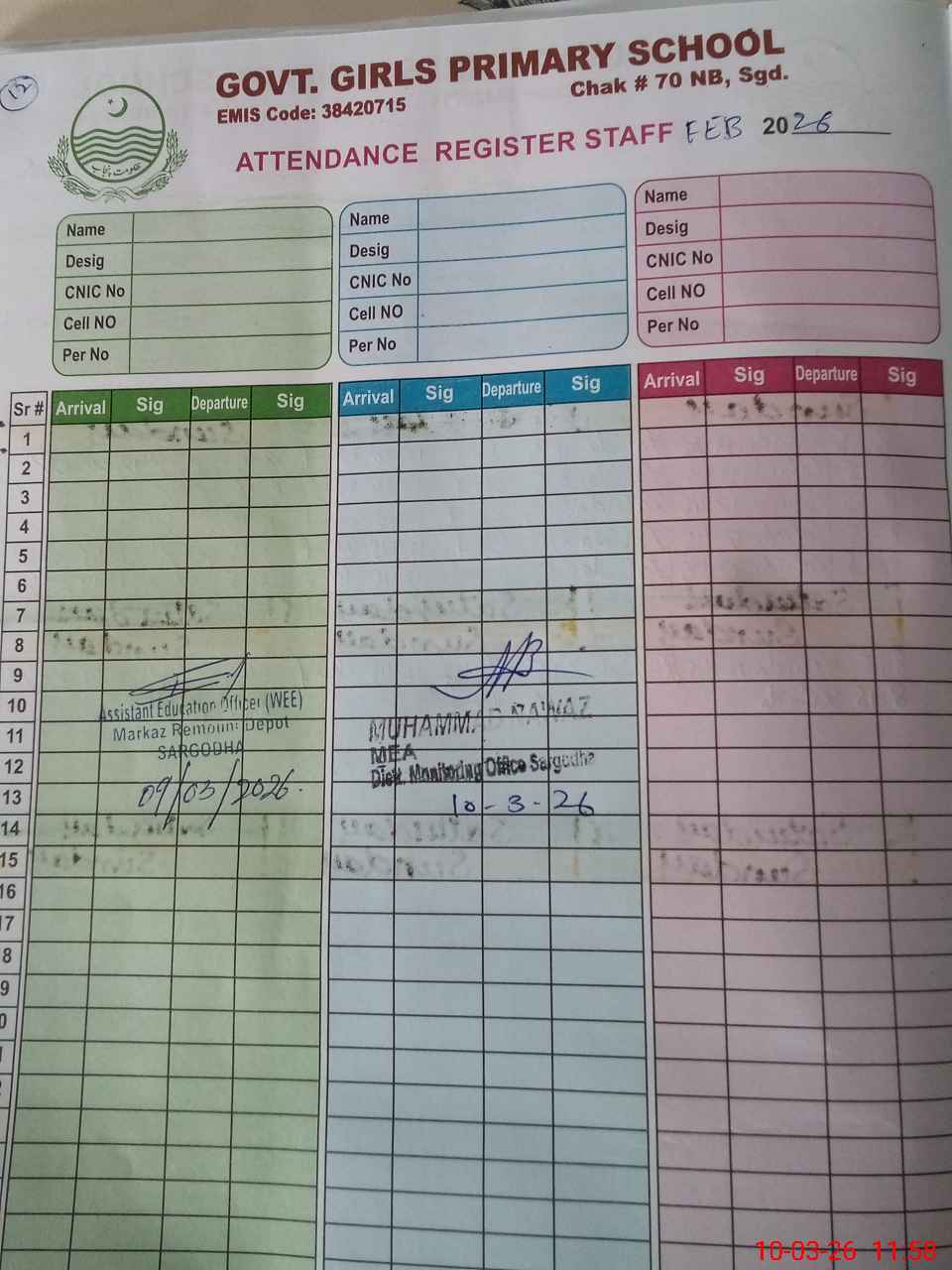 | EMIS Code: 38420715 | Name of School: GGPS CHAK NO.70 NB | |||