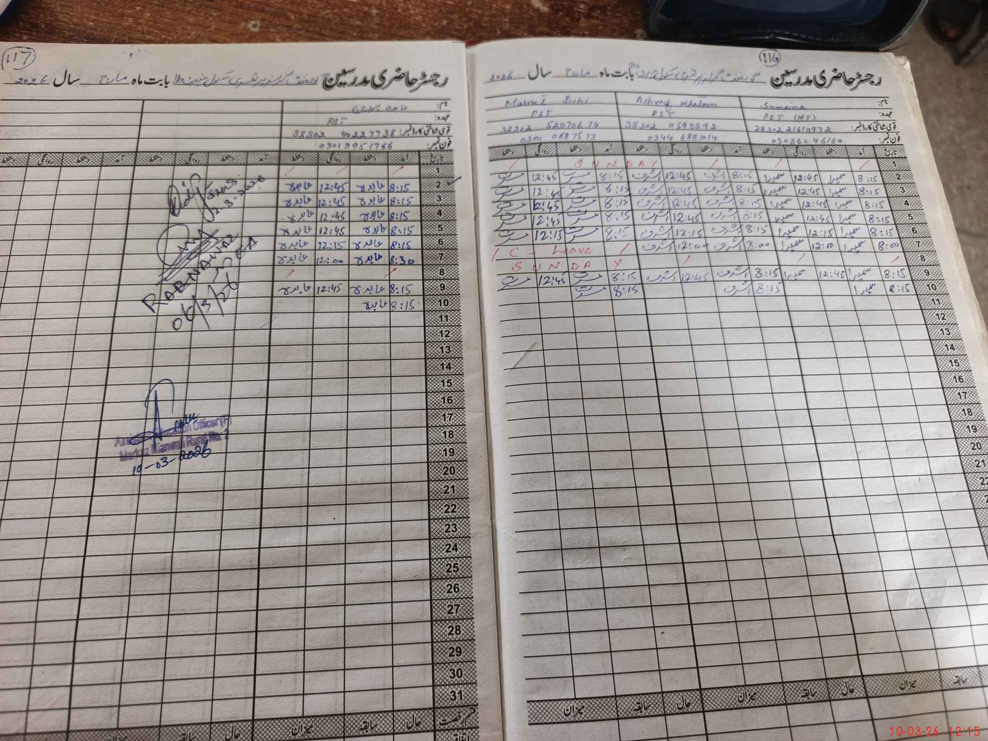 | Name: Su**** Designation: (School Headmaster's/Headmistress's) PST Phone/Cell Number: 03**** |