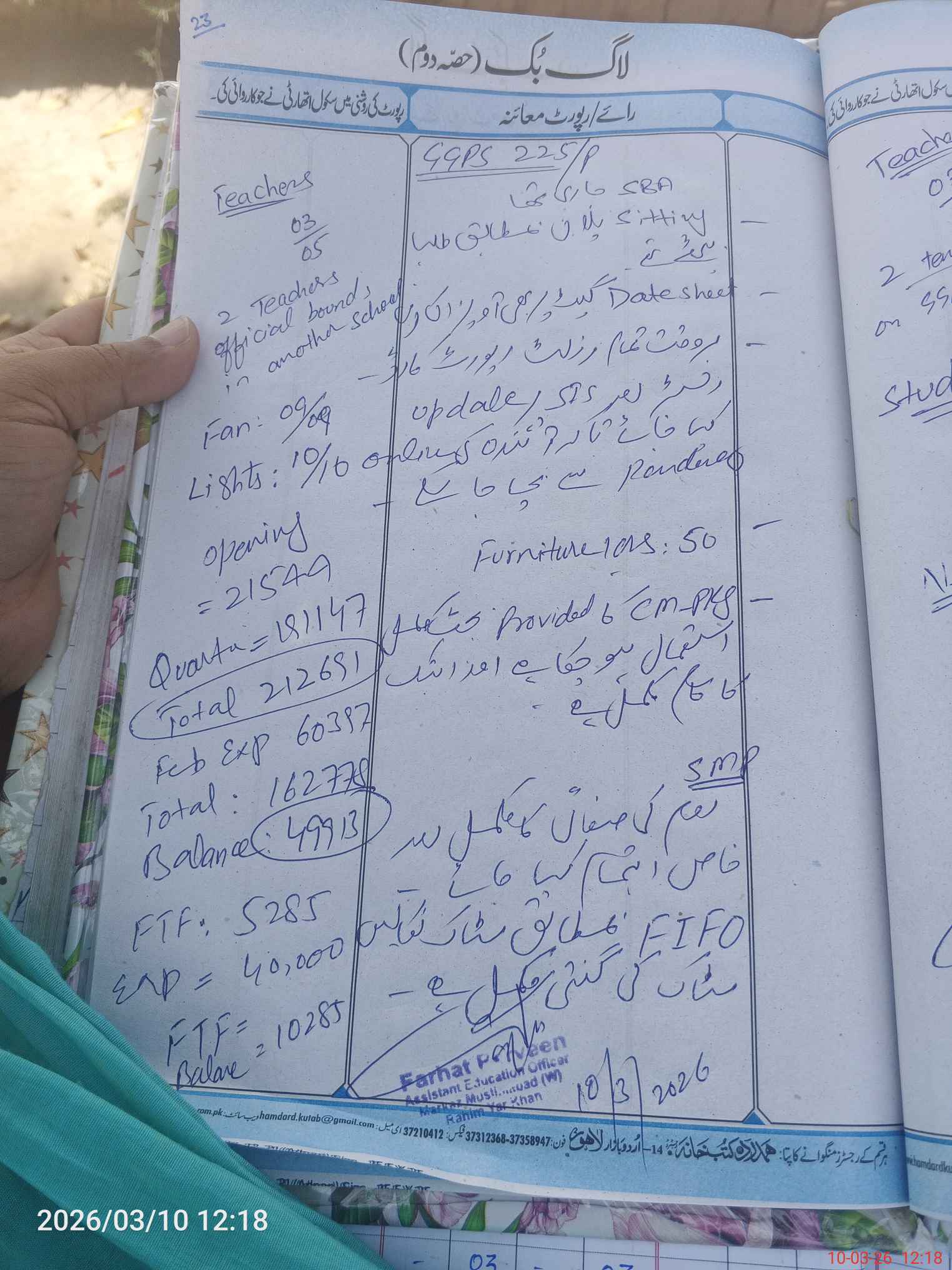 | EMIS Code: 31330503 | Name of School: GGPS CHAK 225/P (Basti Khambra Shahbazpur Road) | |||