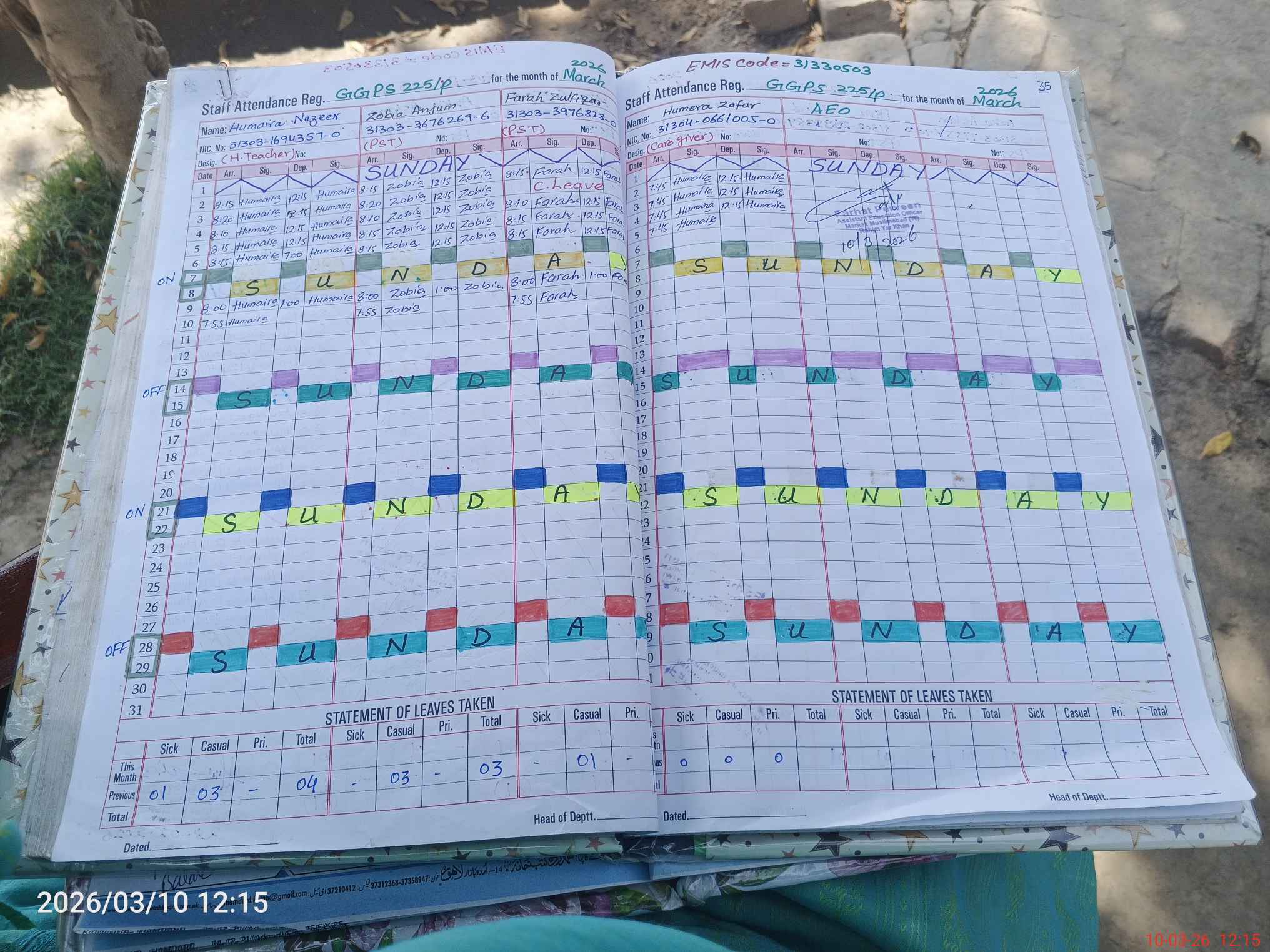 | Leave | Duty | Absent | Maternity | Medical | Ex- Pak |