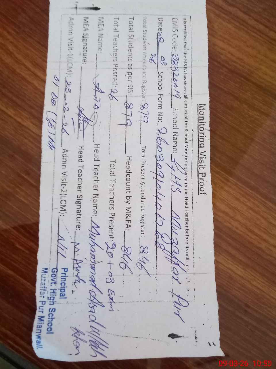 | EMIS Code: 38320019 | Name of School: GHS MUZAFFAR PUR | |||