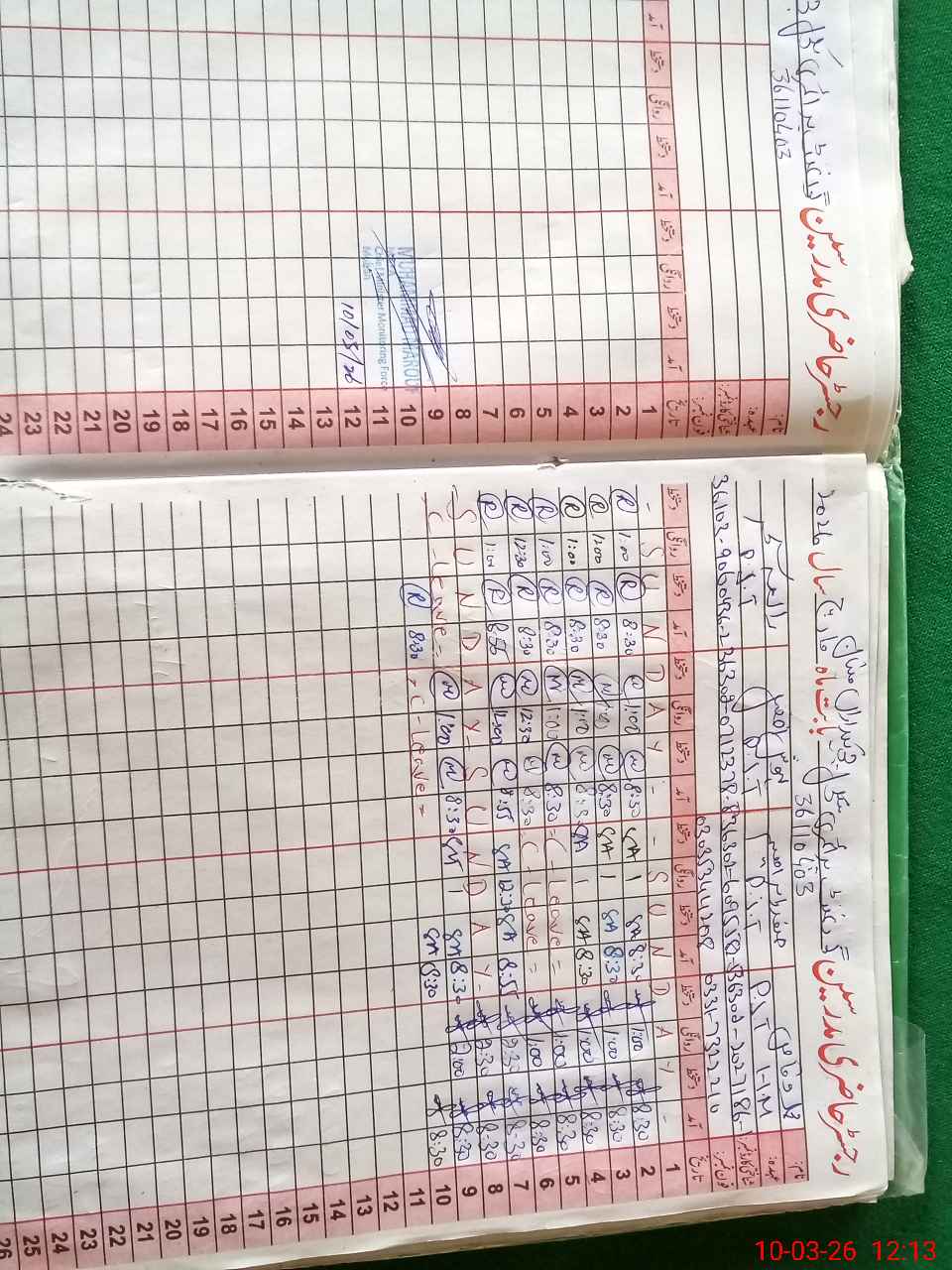 | CNIC | Full Name | Designation | R/C | Absence During Last Calender Month |