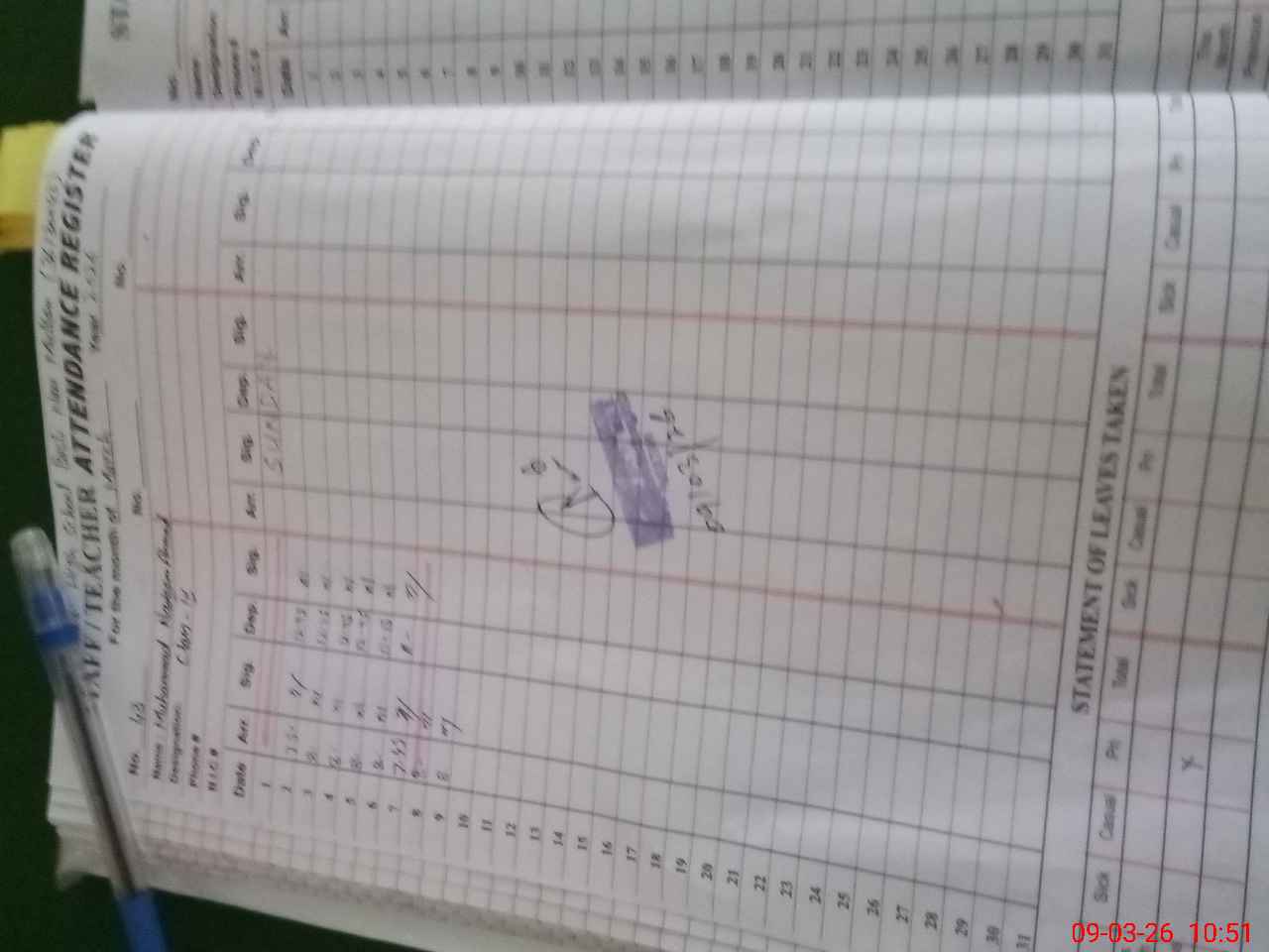 | CNIC | Full Name | Designation | R/C | Absence During Last Calender Month |