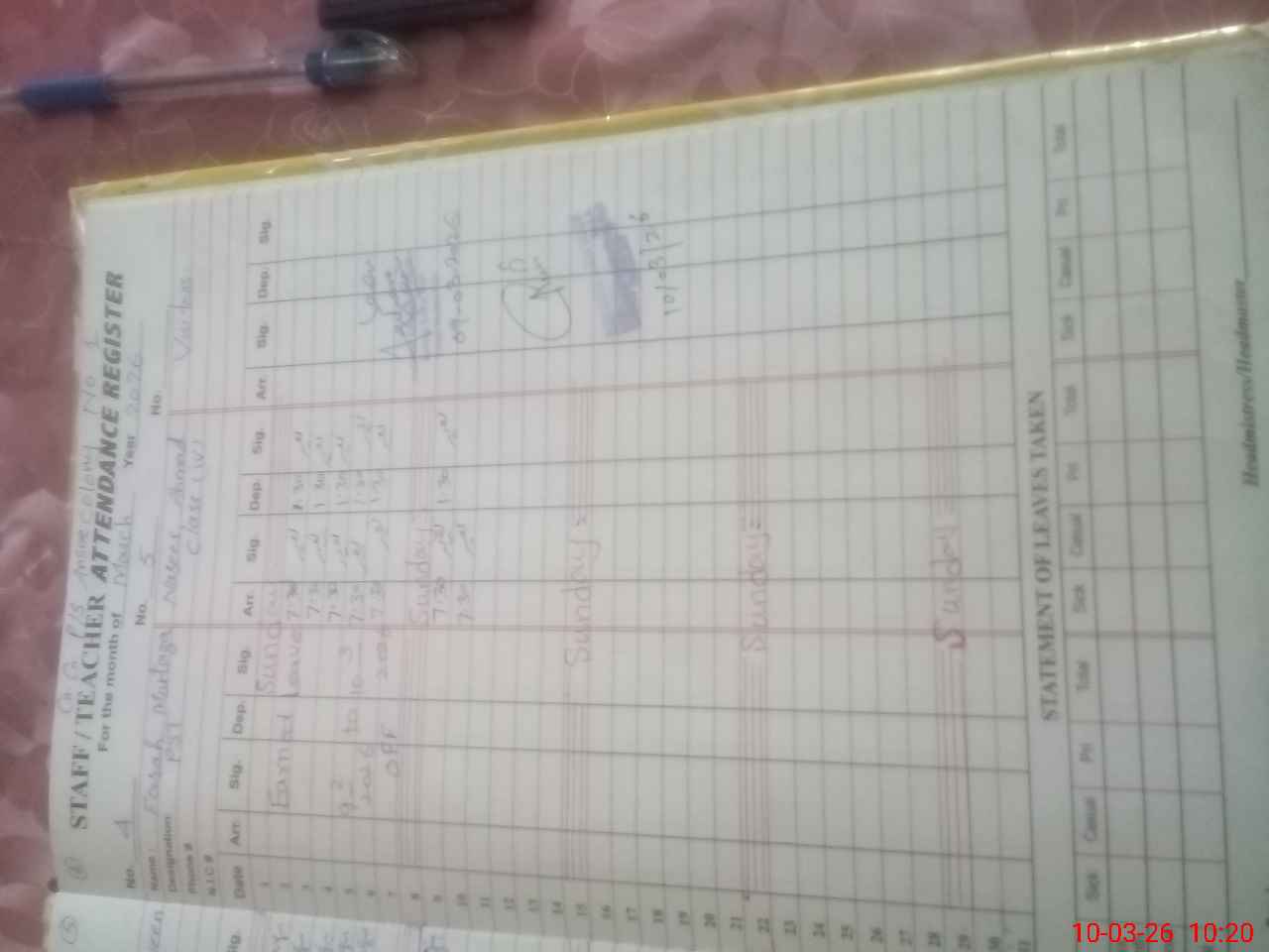 | Name: SA**** SH**** Designation: (School Headmaster's/Headmistress's) PST Phone/Cell Number: 03**** |