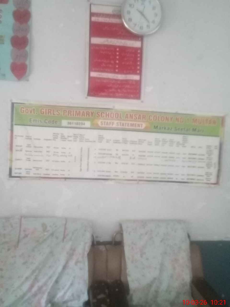 | EMIS Code: 36110234 | Name of School: GGPS ANSAR COLONY NO.1 MULTAN | |||
