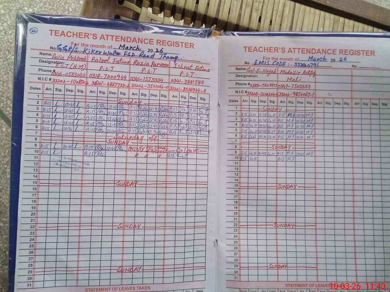| 33**** | Ra**** Pa**** | PST Science/Maths | Regular | 0 | 0 | 0 | 0 | 0 | 0 | 0 | 0 | 0 | Exam Duty |