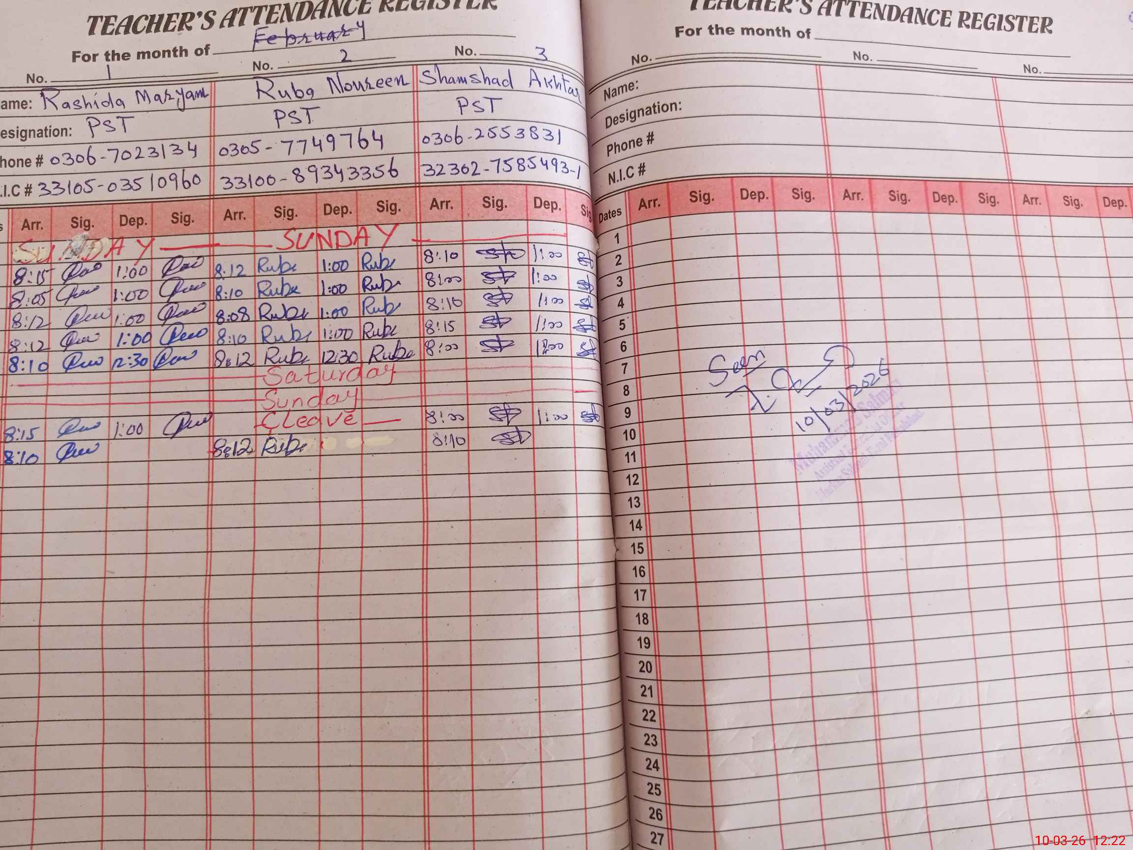 | Name: Ra**** Ma**** Designation: (School Headmaster's/Headmistress's) PST Phone/Cell Number: 03**** |