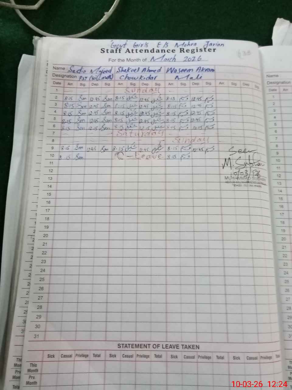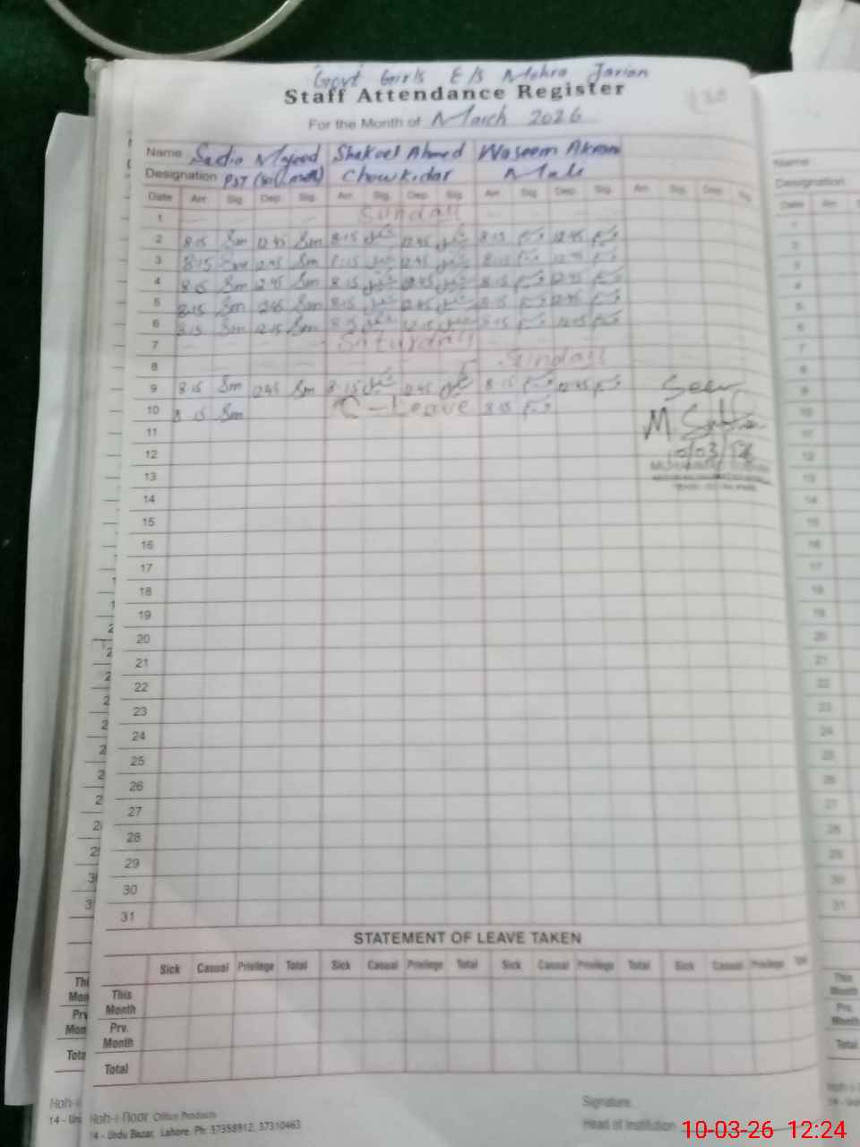 | 37**** | SH**** AH**** | CHOWKIDAR | Regular | 0 | 0 | 0 | 0 | 0 | 0 | 0 | 0 | 0 | Medical |