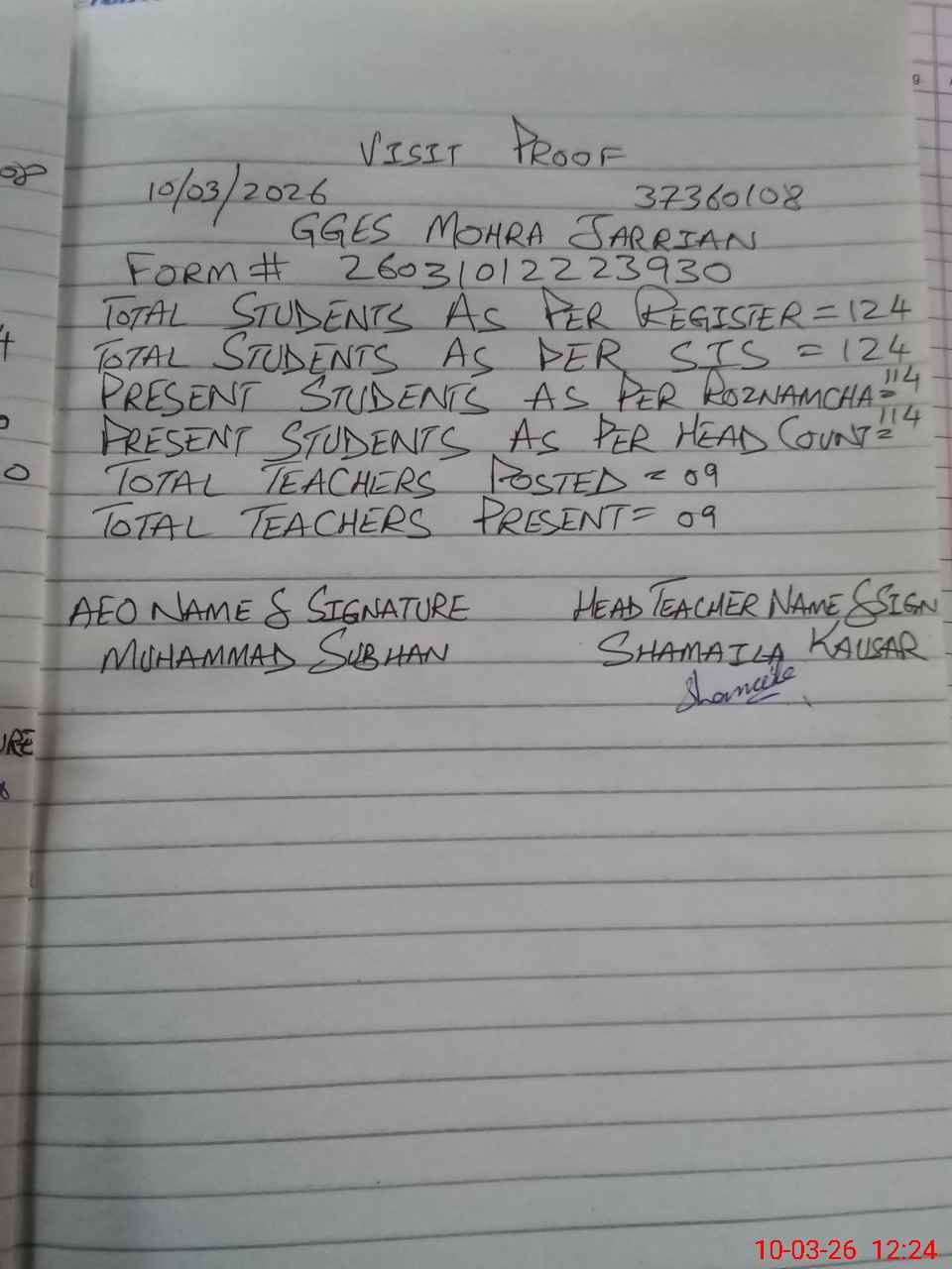 | EMIS Code: 37360108 | Name of School: GGES MOHRA JHARIAN BABA KARAM | |||