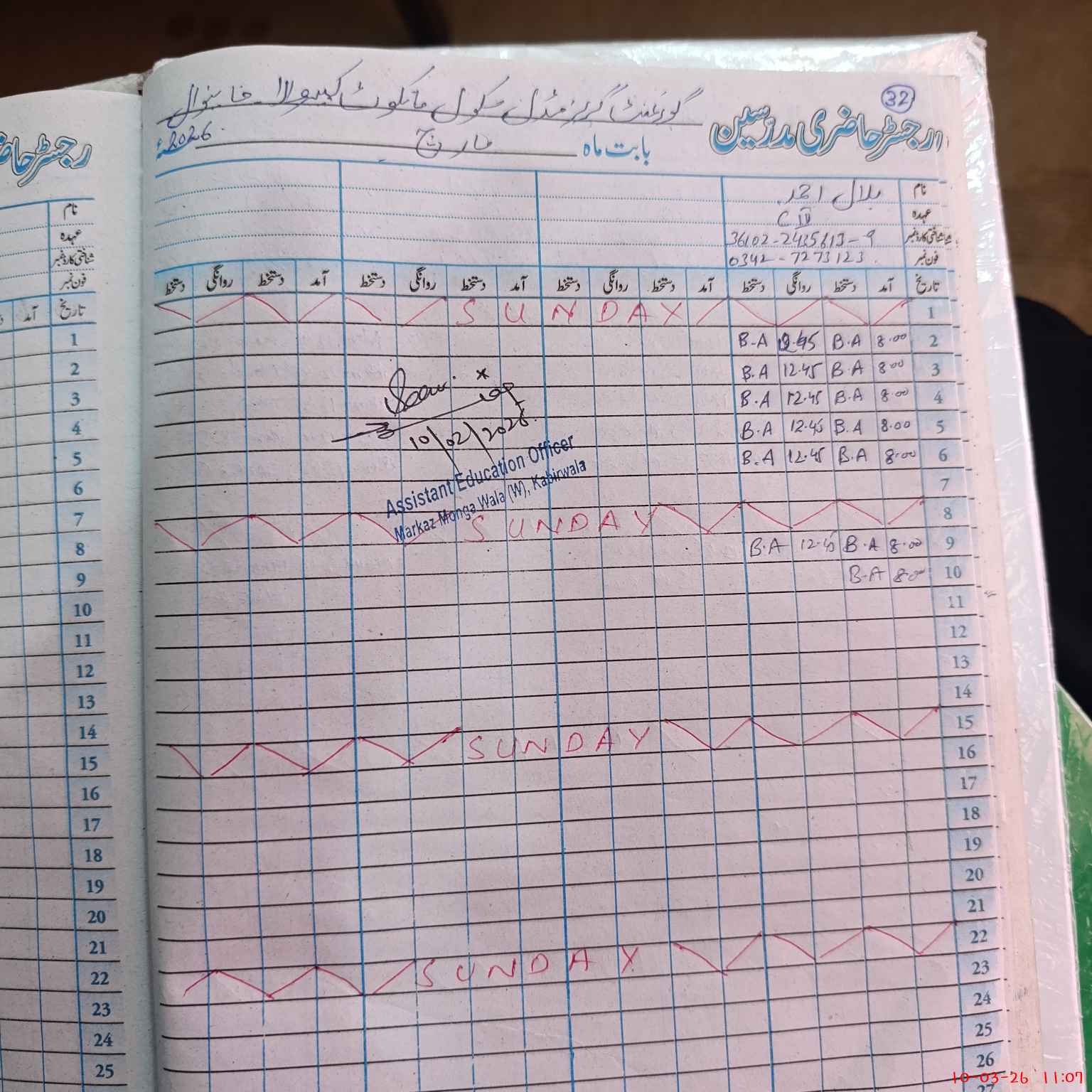 | Name: NO**** IQ**** Designation: (School Headmaster's/Headmistress's) SST Phone/Cell Number: 03**** |