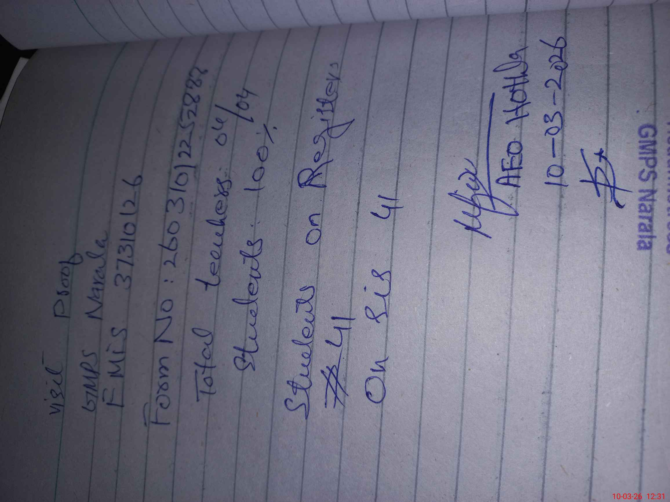 | Attendance Register | Head Teacher | MEA with School | Visit Proof |