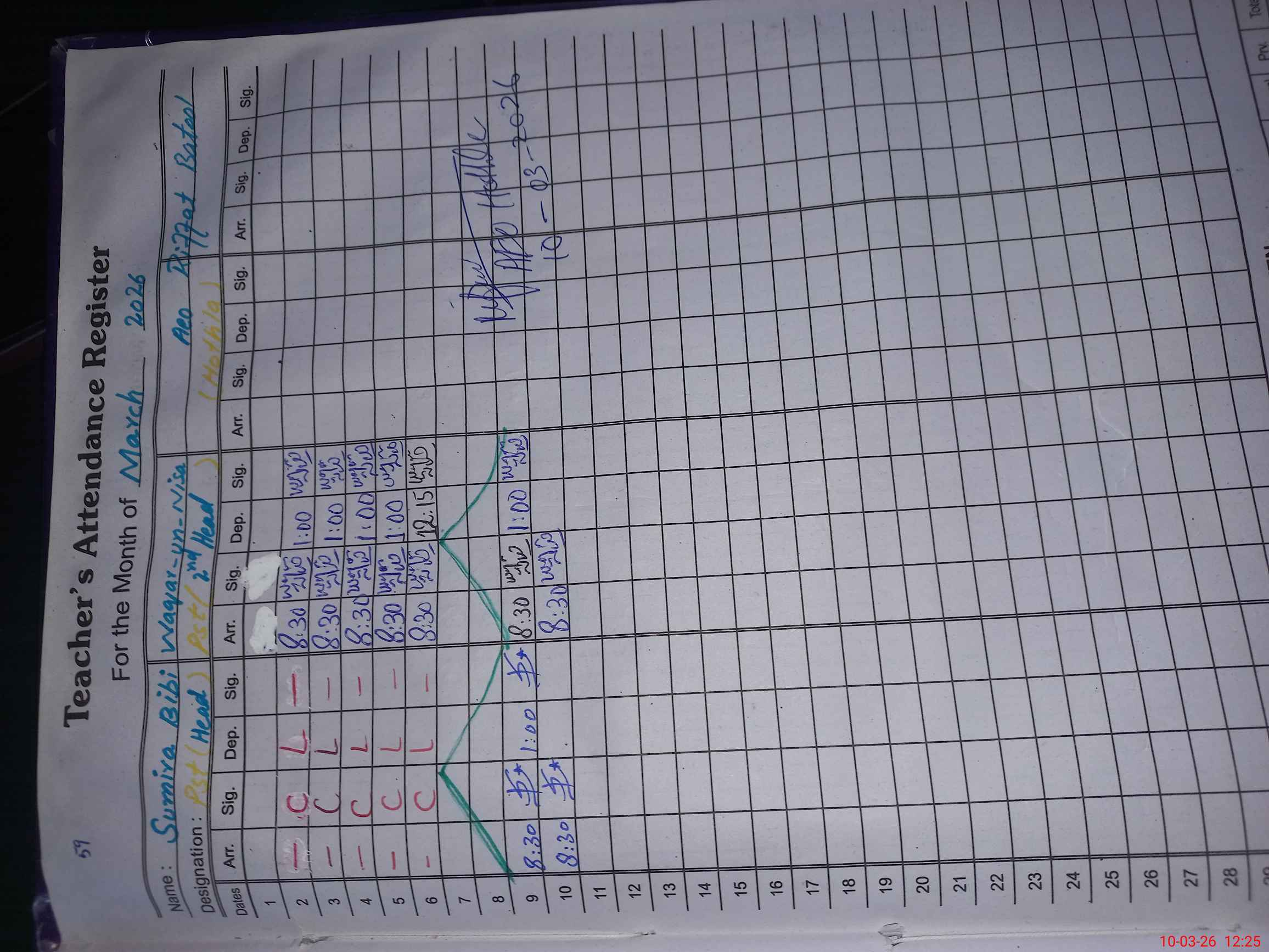 | Name: Su**** Bi**** Designation: (School Headmaster's/Headmistress's) PST Phone/Cell Number: 03**** |