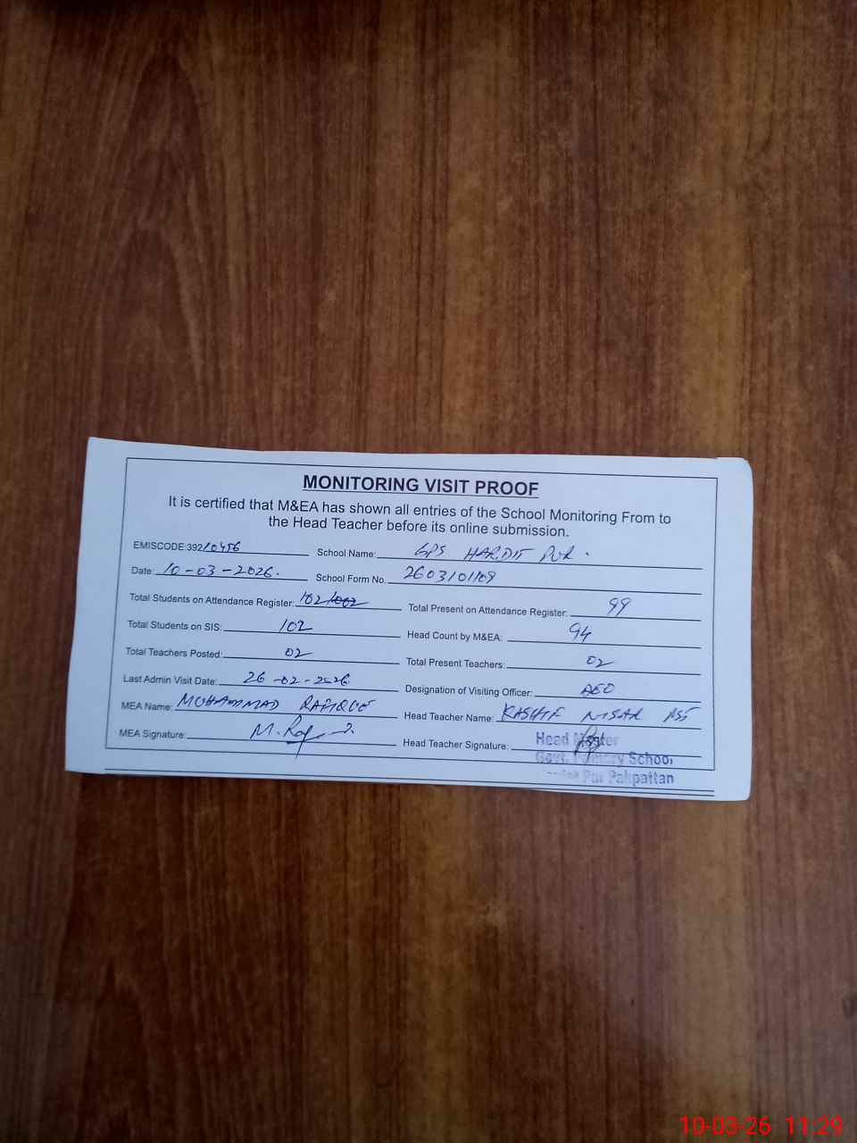 | EMIS Code: 39210456 | Name of School: GPS HARDIT PUR | |||