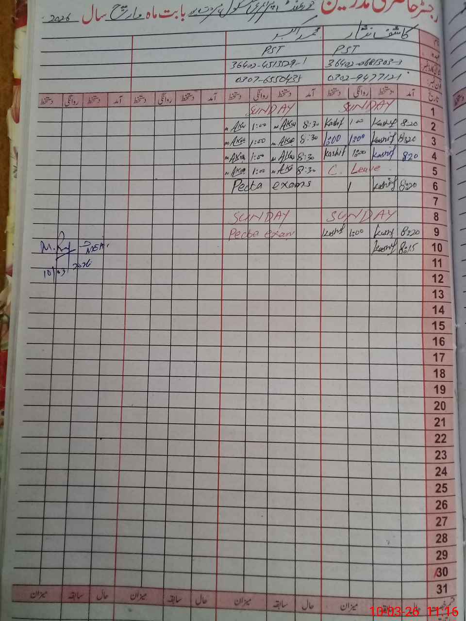 | 36**** | Mu**** Ak**** | PST Science/Maths | Regular | 0 | 3 | 0 | 0 | 0 | 0 | 0 | 0 | 0 | Exam Duty |