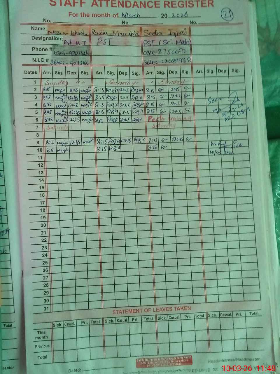 | Name: Na**** Kh**** Designation: (School Headmaster's/Headmistress's) PST Phone/Cell Number: 03**** |