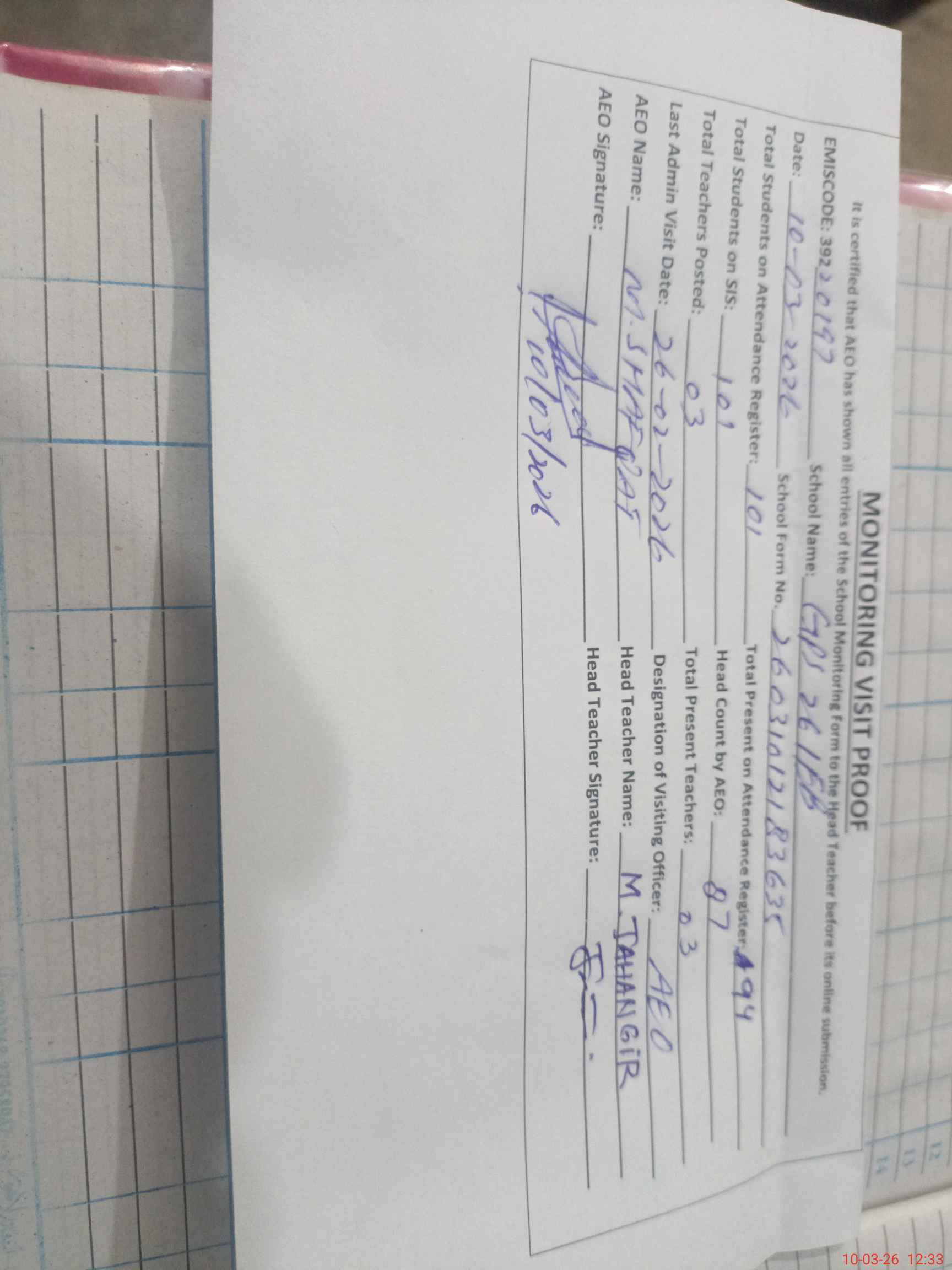 | Certified that this School was Inspected by the Undersigned MEA/DMO Today and the Information Stated Above is as Per Record. | |||||