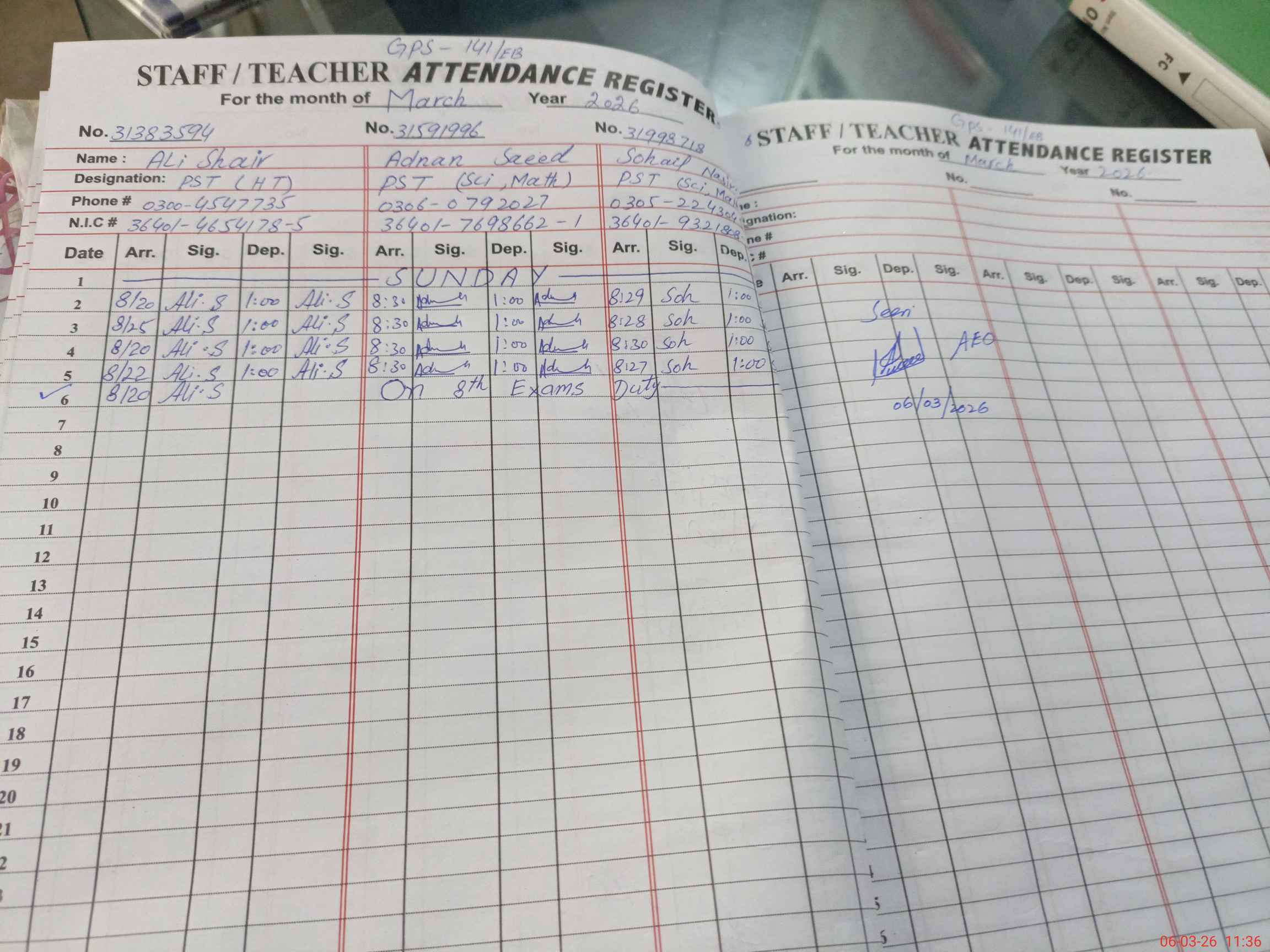 | 36**** | Ad**** Sa**** | PST Science/Maths | Regular | 0 | 0 | 0 | 0 | 0 | 0 | 0 | 0 | 0 | Exam Duty |
