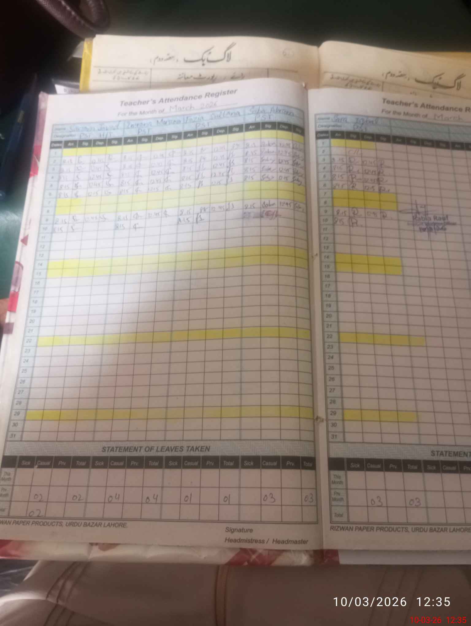 | Leave | Duty | Absent | Maternity | Medical | Ex- Pak |