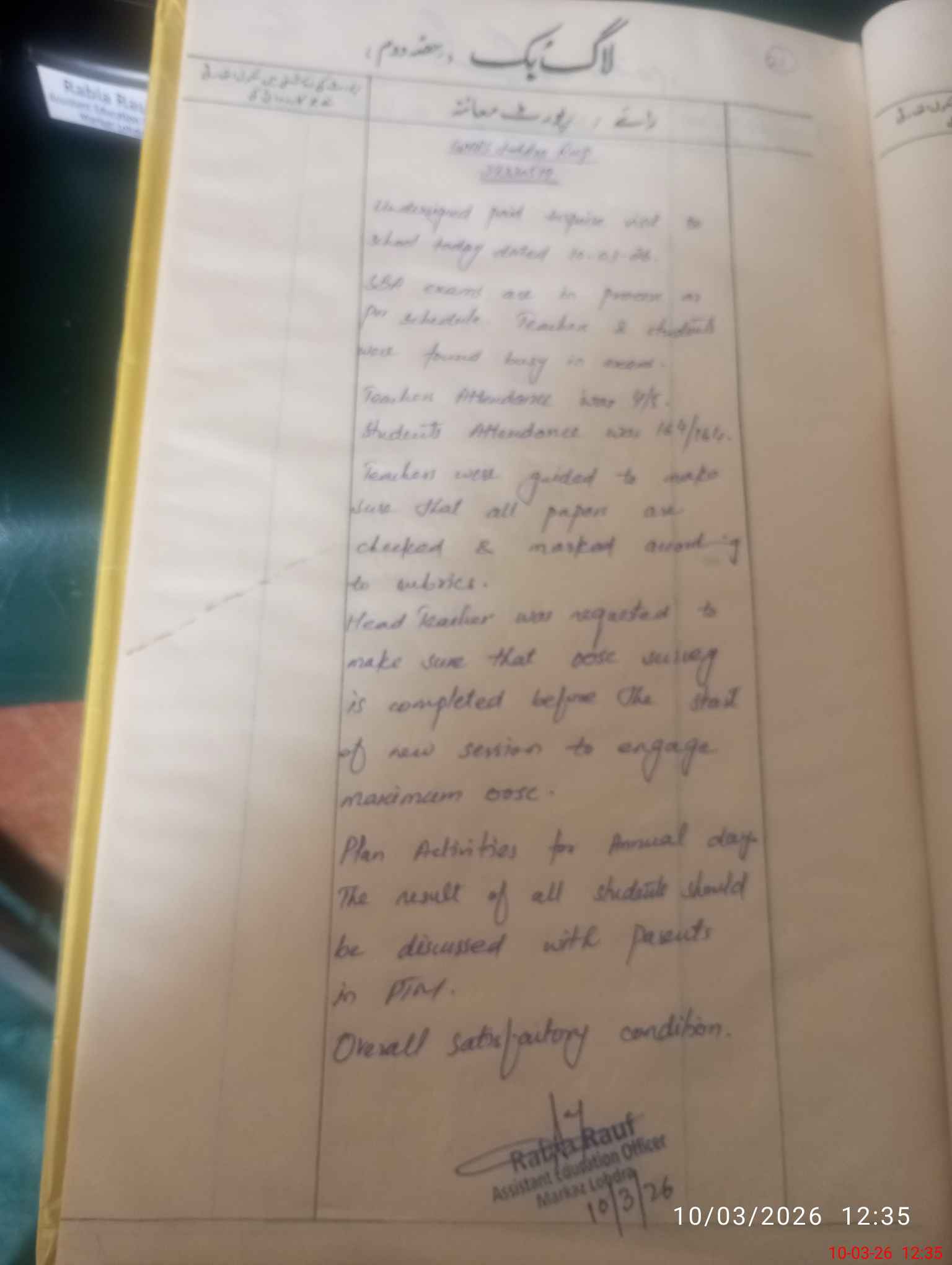 | Certified that this School was Inspected by the Undersigned MEA/DMO Today and the Information Stated Above is as Per Record. | |||||