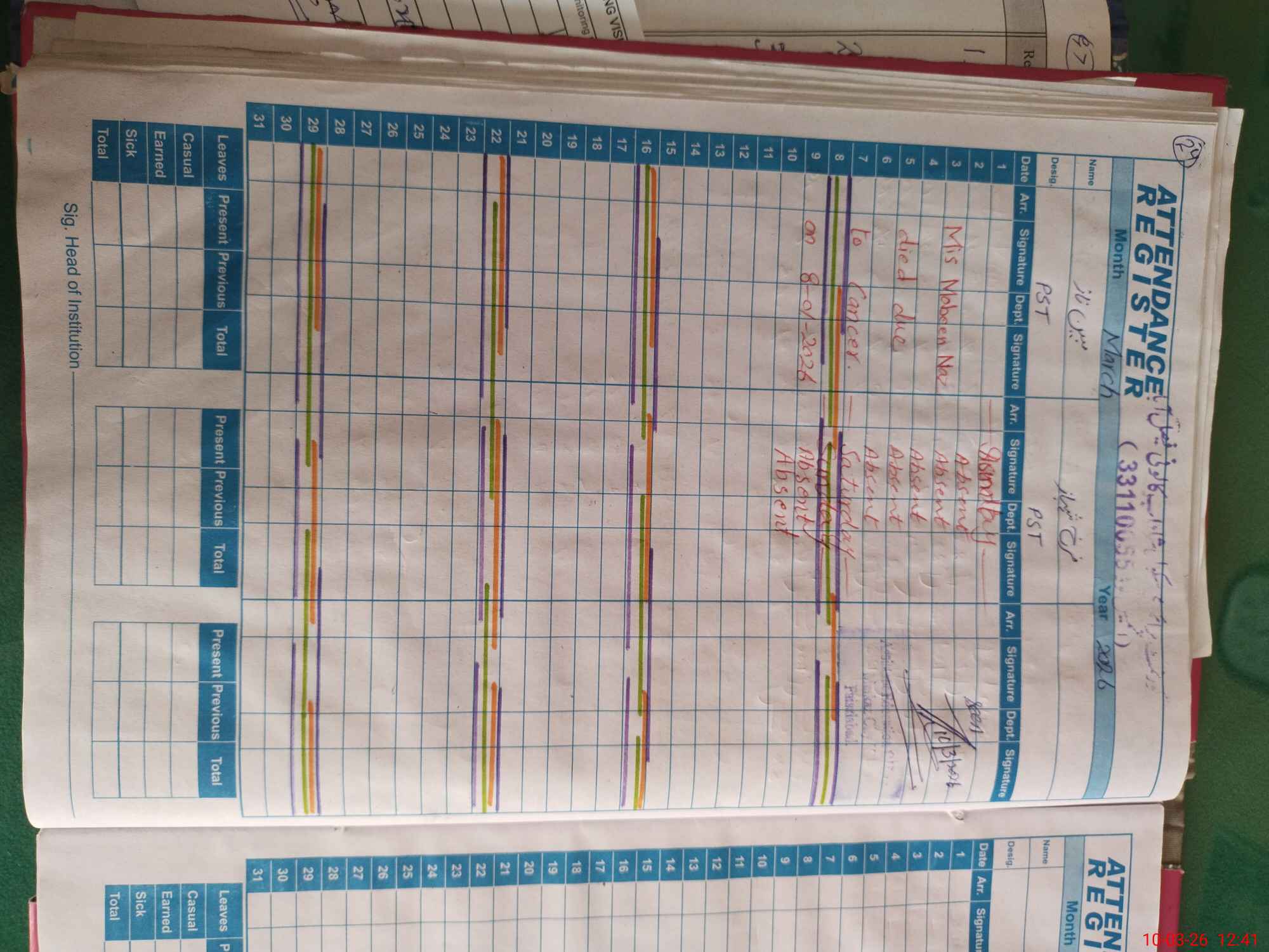 | 33**** | Fu**** Sh**** | PST Science/Maths | Regular | 0 | 0 | 0 | 0 | 0 | 0 | 0 | 0 | 0 | Absent (Un-Authorized) |