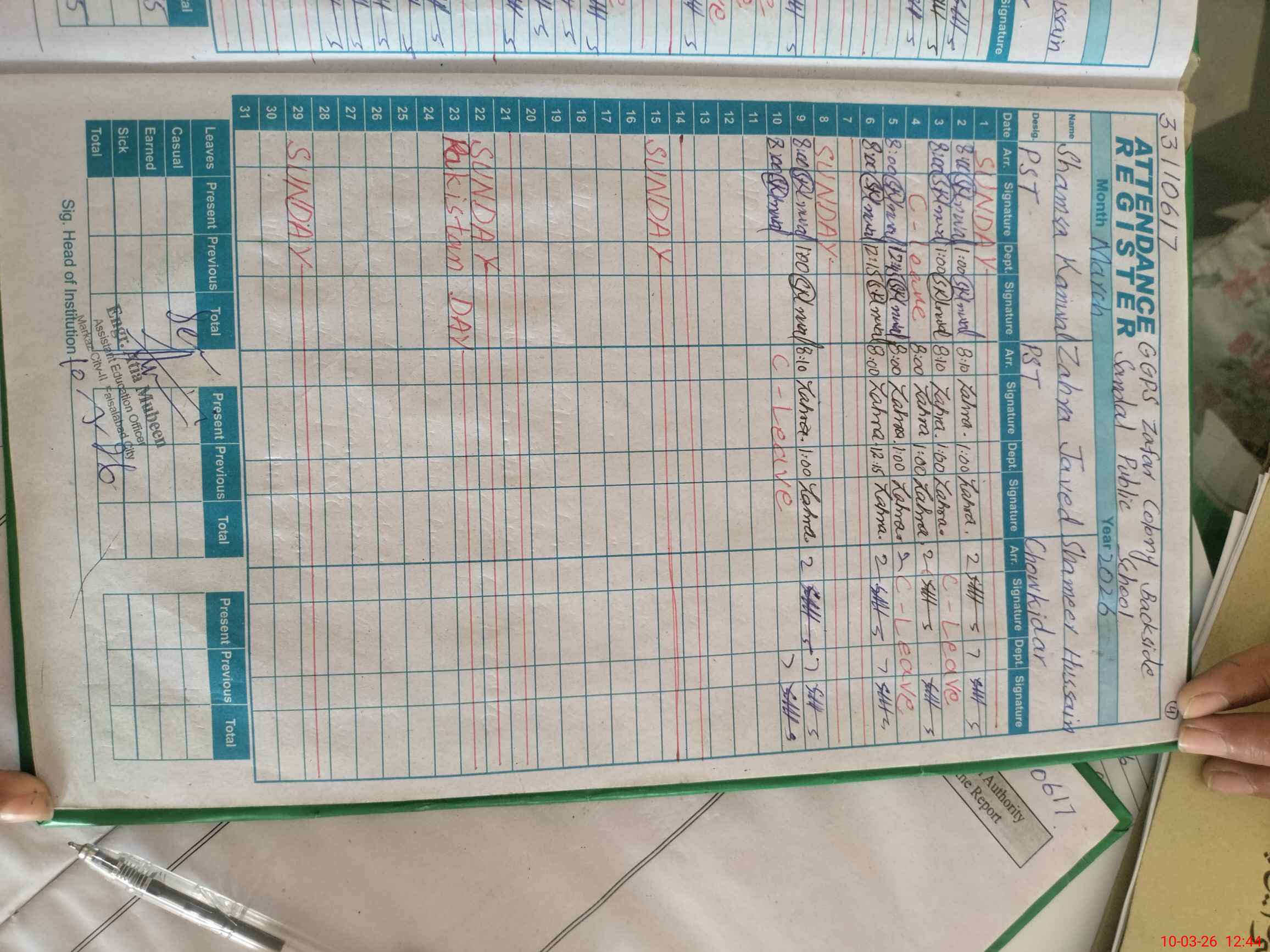 | 33**** | Za**** Ja**** | PST Arts | Regular | 0 | 0 | 0 | 0 | 0 | 0 | 0 | 0 | 0 | Casual |