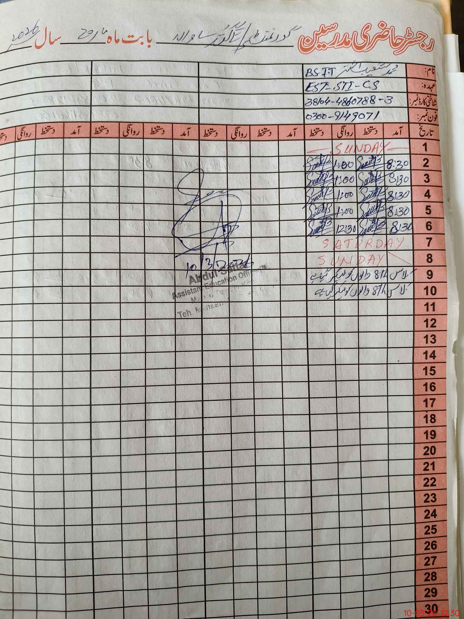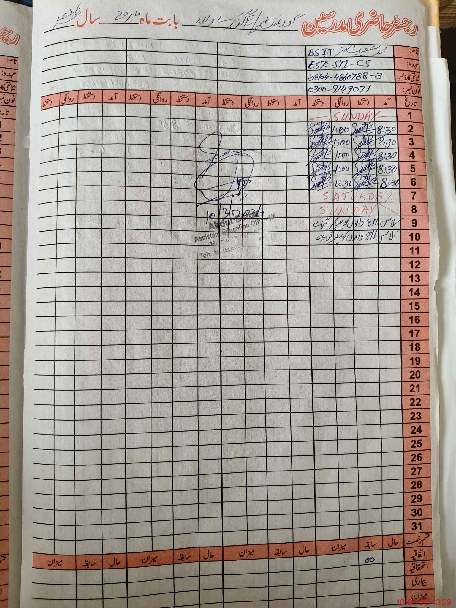 | Name: MU**** HA**** Designation: (School Headmaster's/Headmistress's) PTC/JV Phone/Cell Number: 03**** |