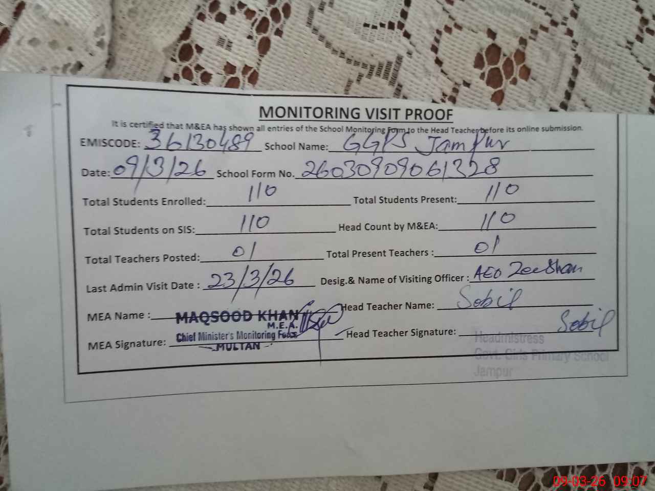 | EMIS Code: 36130489 | Name of School: GGPS JAM PUR | |||