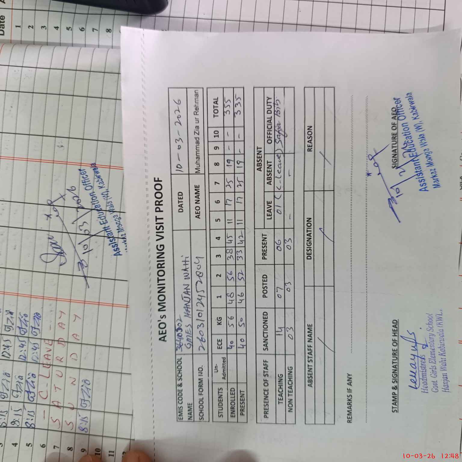 | Monitoring Date: 10-03-2026 | Start Time: 10-03-2026 12:31 PM | End Time: 10-03-2026 12:48 PM | Name of MEA: MU**** ZI**** URRE**** | |