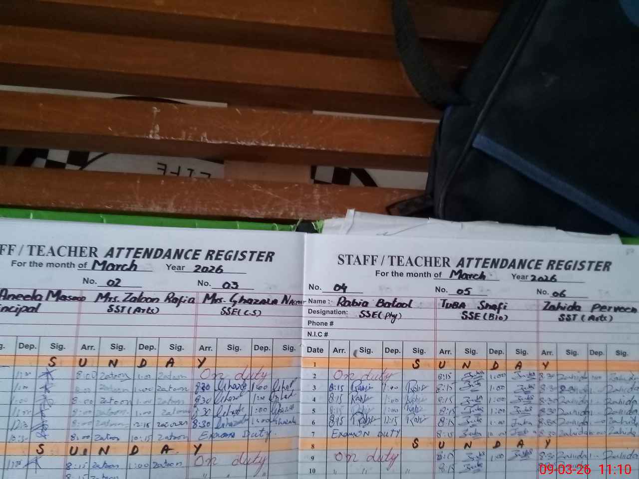 | CNIC | Full Name | Designation | R/C | Absence During Last Calender Month |